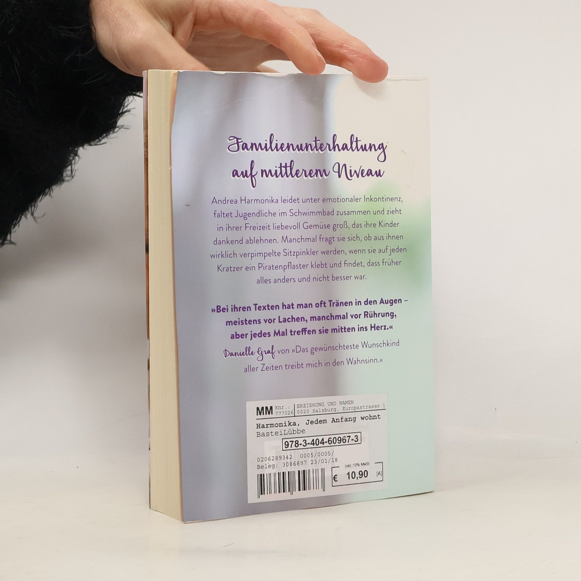 Andrea Harmonika leidet unter emotionaler Inkontinenz, faltet Jugendliche im Schwimmbad zusammen und zieht in ihrer Freizeit liebevoll Gemüse groß, das ihre Kinder dankend ablehnen. Manchmal fragt sie sich, ob aus ihnen wirklich verpimpelte Sitzpinkler werden, wenn sie auf jeden Kratzer ein Piratenpflaster klebt und findet, dass früher alles anders, und nicht besser war.