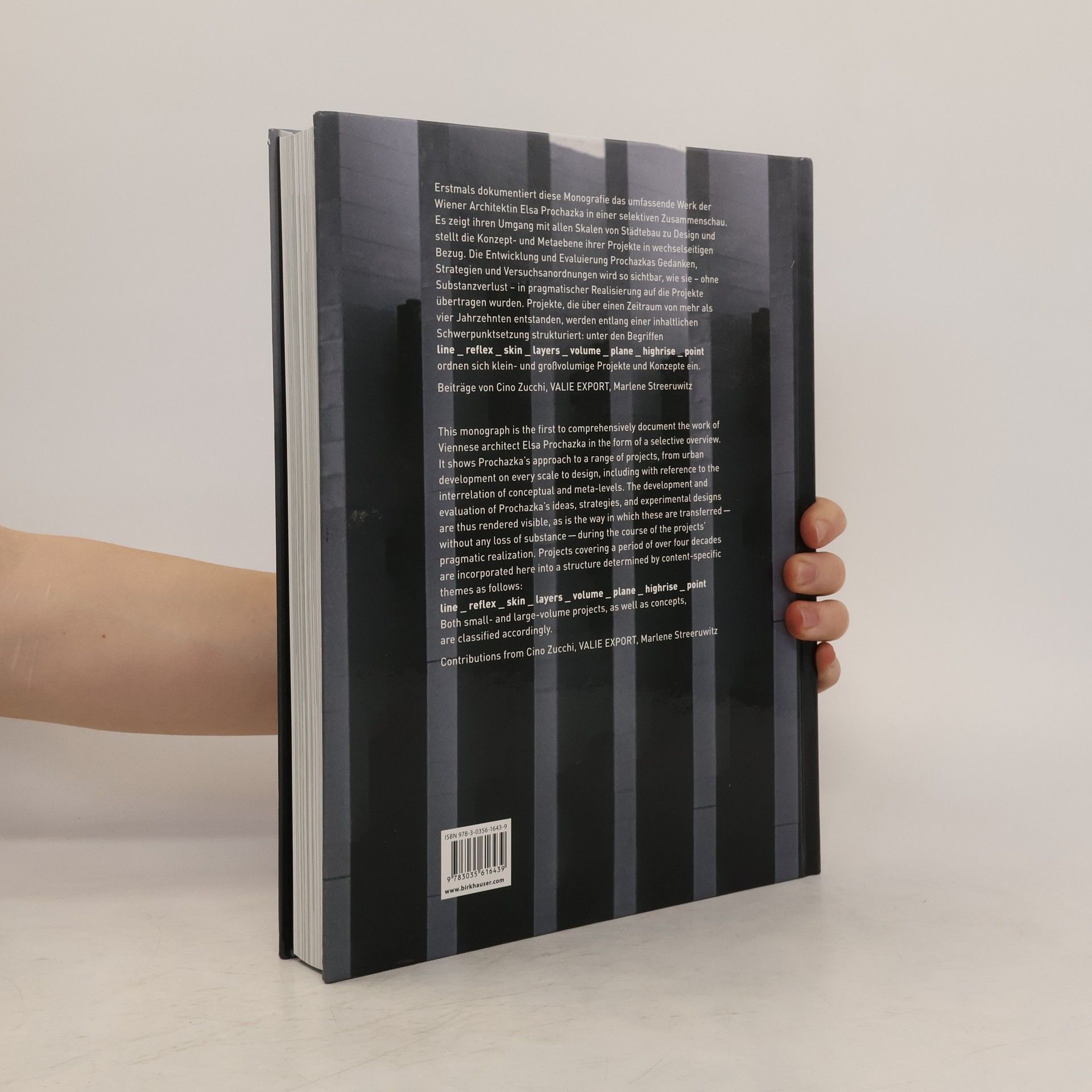 In gut 4 Jahrzehnten realisierte die Architektin Elsa Prochazka recht unterschiedlich große Volumina: vom Möbeldesign über Architektur bis hin zu städtebaulichen Projekten. Gäbe es eine Wiener Schule des gehobenen zeitgenössischen Interieurs, Elsa Prochazka wäre eine prototypische Vertreterin: „Ihre Interieurs forcieren geradezu das Taktile, verlangen die körperliche Beteiligung als Agens der geistigen." (Otto Kapfinger). Dieses Zitat könnte gleichermaßen für ihre Bauten stehen. Prochazka entwickelte und vermittelt ihre konzeptionelle Haltung auch im Rahmen ihrer Professuren und ihrer internationalen Vortragstätigkeit. Das Buch schließt eine Lücke in der Dokumentation prägender Wiener Architektinnen.