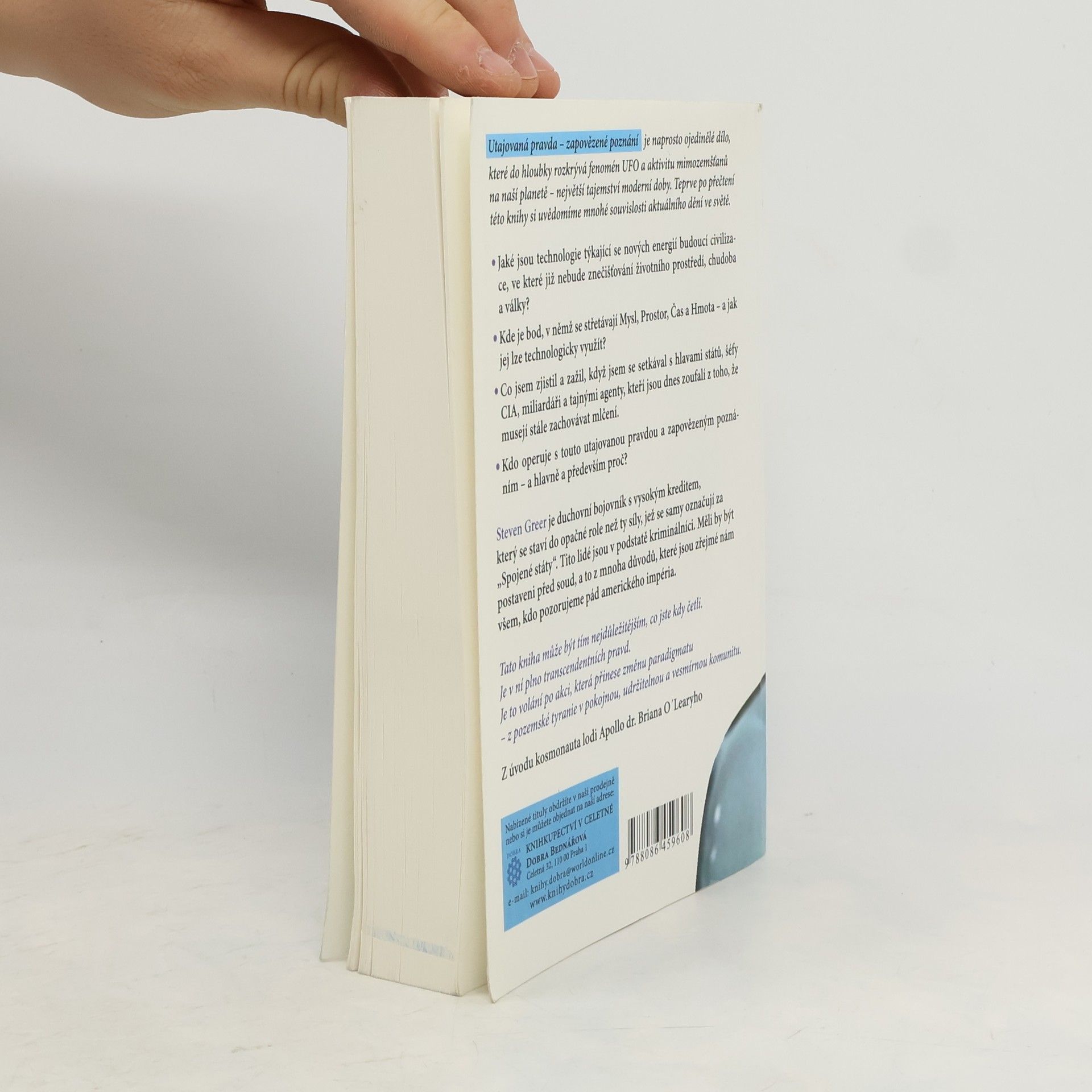 Fenomén UFO - aktivity mimozemšťanů na naší planetě. Utajovaná pravda - zapovězené poznání je naprosto ojedinělé dílo, které do hloubky rozkrývá fenomén UFO a aktivitu mimozemšťanů na naší planetě - největší tajemství moderní doby. Teprve po přečtení této knihy si uvědomíte mnohé souvislosti aktuálního dění ve světě. - Jaké jsou technologie týkající se nových energií budoucí civilizace, ve které již nebude znečišťování životního prostředí, chudoba a války? - Kde je bod, v němž se střetávají Mysl, Prostor, Čas a Hmota - a jak jej lze technologicky využít? - Co jsem zjistil a zažil, když jsem se setkával s hlavami států, šéfy CIA, miliardáři a tajnými agenty, kteří jsou dnes zoufalí z toho, že musejí stále zachovávat mlčení. - Kdo operuje s touto utajovanou pravdou a zapovězeným poznáním - a hlavně především proč? Steven Greer je duchovní bojovník s vysokým kreditem, který se staví do opačné role než ty síly, jež se samy označují za "Spojené státy". Tito lidé jsou v podstatě kriminálníci. Měli by být postaveni před soud, a to z mnoha důvodů, které jsou zřejmé nám všem, kdo pozorujem pád amerického impéria. Tato kniha může být tím nejdůležitějším, co jste kdy četli. Je v ní plno transcendentních pravd. Je to volání po akci, která přinese změnu paradigmatu - z pozemské tyranie v pokojnou, udržitelnou a vesmírnou komunitu.