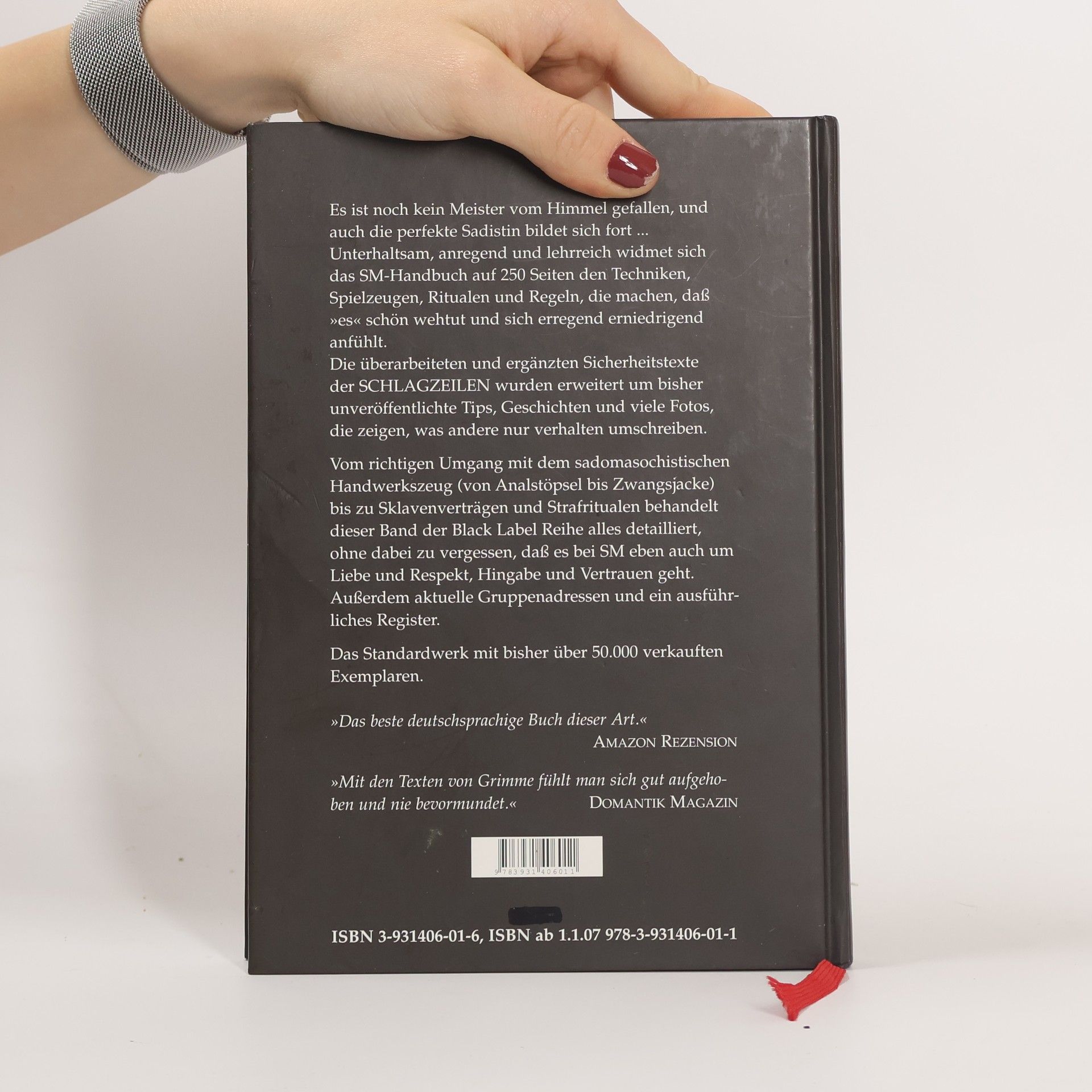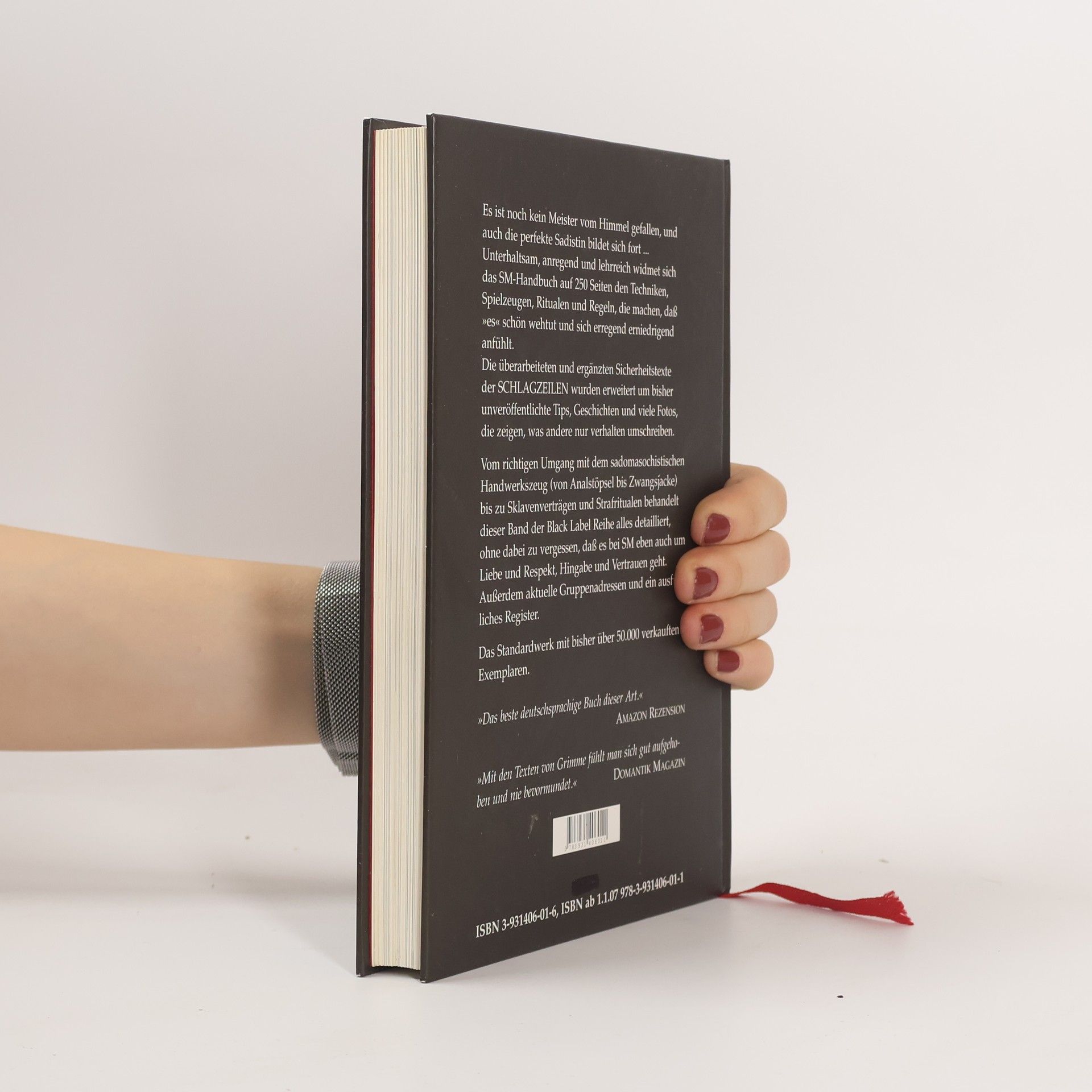Das SM-Handbuch Es ist noch kein Meister vom Himmel gefallen, und auch die perfekte Sadistin bildet sich fort. Unterhaltsam, anregend und lehrreich widmet sich das SM-Handbuch auf 256 Seiten den Techniken, Spielzeugen, Ritualen und Regeln, die machen, dass "es" schön wehtut und sich erregend erniedrigend anfühlt. Autor/Interpret: Matthias T. J. Grimme Hardcover, 256 S., 10. Auflage 2012 Die überarbeiteten und ergänzten Sicherheitstexte des Hamburger SM-Magazins Schlagzeilen (www.schlagzeilen.com) wurden erweitert um bisher unveröffentlichte Tipps, Geschichten und viele Fotos, die zeigen, was andere nur verhalten umschreiben. Vom richtigen Umgang mit dem sadomasochistischen Handwerkszeug (von Analstöpsel bis Zwangsjacke) bis zu Sklavenverträgen und Strafritualen, Gruppenadressen und Buchtipps behandelt dieser neue Band der Black Label Reihe alles detailliert, ohne dabei zu vergessen, dass es bei SM eben auch um Liebe und Respekt, Hingabe und Vertrauen geht. Mit ausführlichem Schlagwort Register.