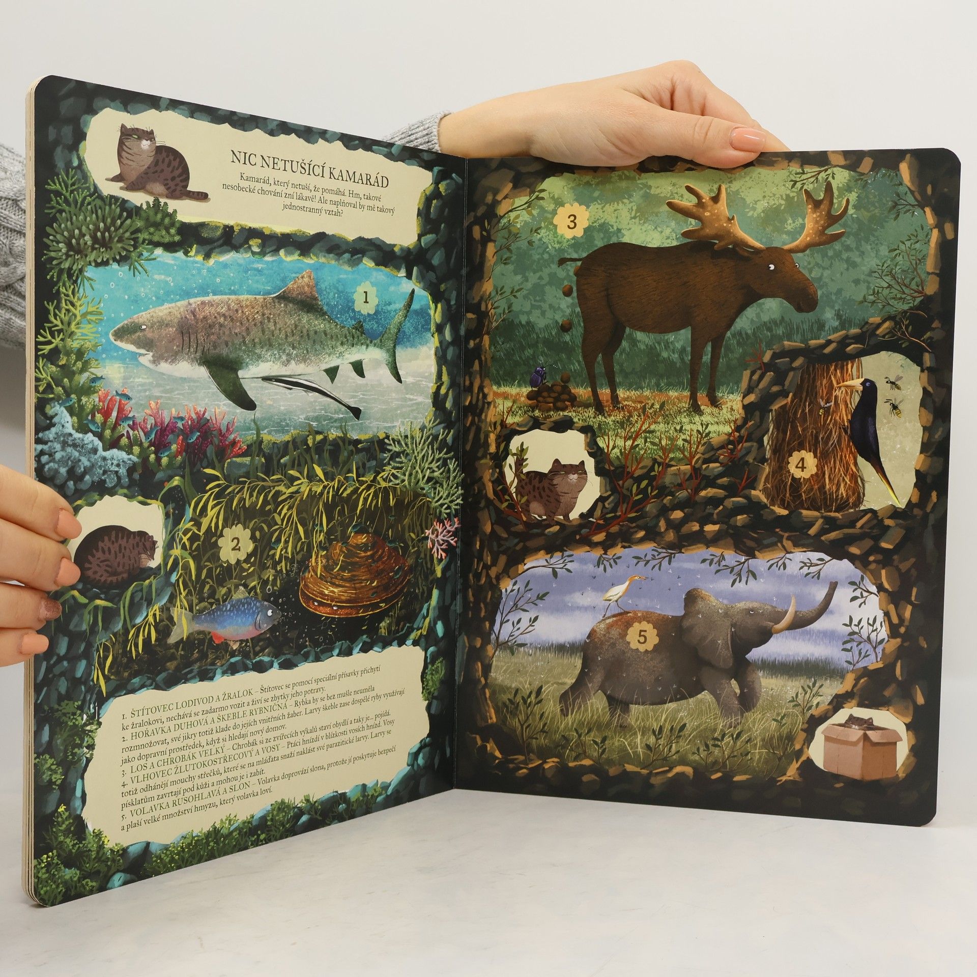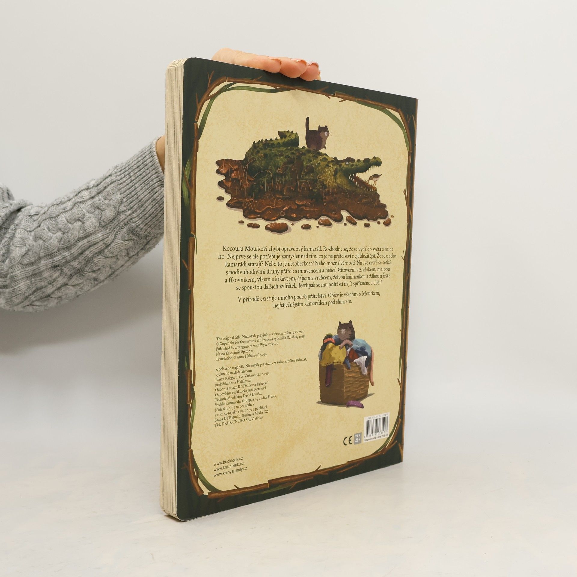 Kdo se ve světě přírody kamarádí? Kdo si pomáhá? Kdo komu připravuje snídani? Kdo koho s péčí ohryzává? Kocour Mourek provede nejmenší děti úžasným světem přírody, ve kterém vznikají neobyčejná a vzácná přátelství mezi zvířátky a rostlinkami, rostlinkami a houbami a houbami a zvířátky. Děti se s kocouřím kamarádem vydají po stopách přátelství, která jsou mnohdy překvapující, a zábavnou formou se dozvědí spoustu zajímavostí. Krásné velkoformátové leporelo s láskou nakreslila oblíbená ilustrátorka Emilia Dziubaková. Leporelo je určeno dětem od 4 let.