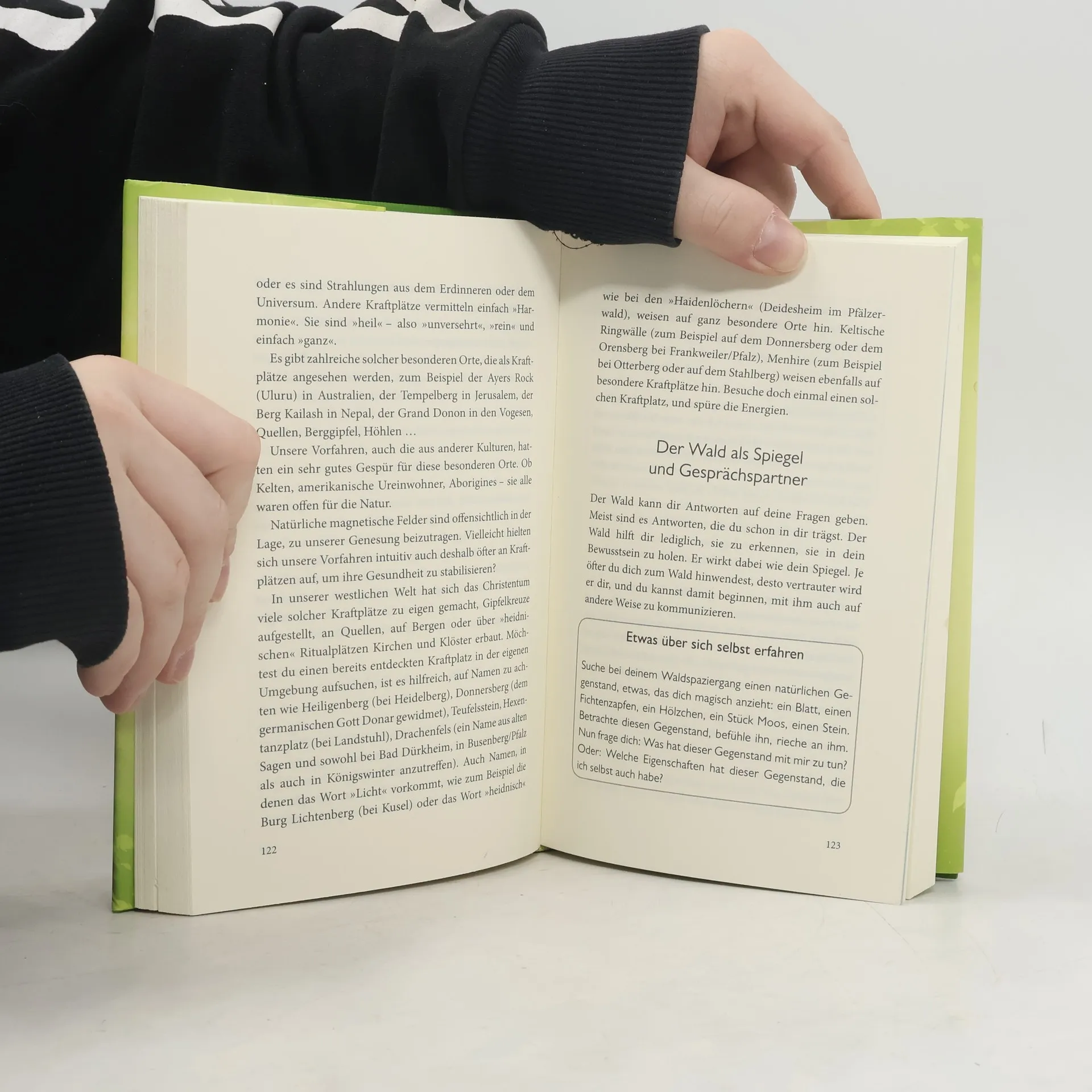 Intensiver Kiefernduft, moosbedeckter Erdboden, das dichte Blätterdach der Baumkronen – der Wald übt eine ganz besondere Anziehungskraft auf uns Menschen aus. Dass seine Atmosphäre eine verblüffend heilsame Wirkung besitzt, ist mittlerweile sogar wissenschaftlich erwiesen. Die Natur- und Wildnispädagogin Ina Schmitt eröffnet eine Erlebniswelt, in der wir den Wald ganz neu entdecken können: als Kraft- und Rückzugsort, der uns Energie schenkt, alle Sinne stimuliert und uns zu uns selbst führt. Mit ihren motivierenden Anregungen, vielen einfachen Übungen und faszinierenden Hintergrundinformationen wird der Aufenthalt in der Natur zu einem wohltuenden, stärkenden und heilenden Erlebnis. Ausstattung: mit 8 S. Farbteil