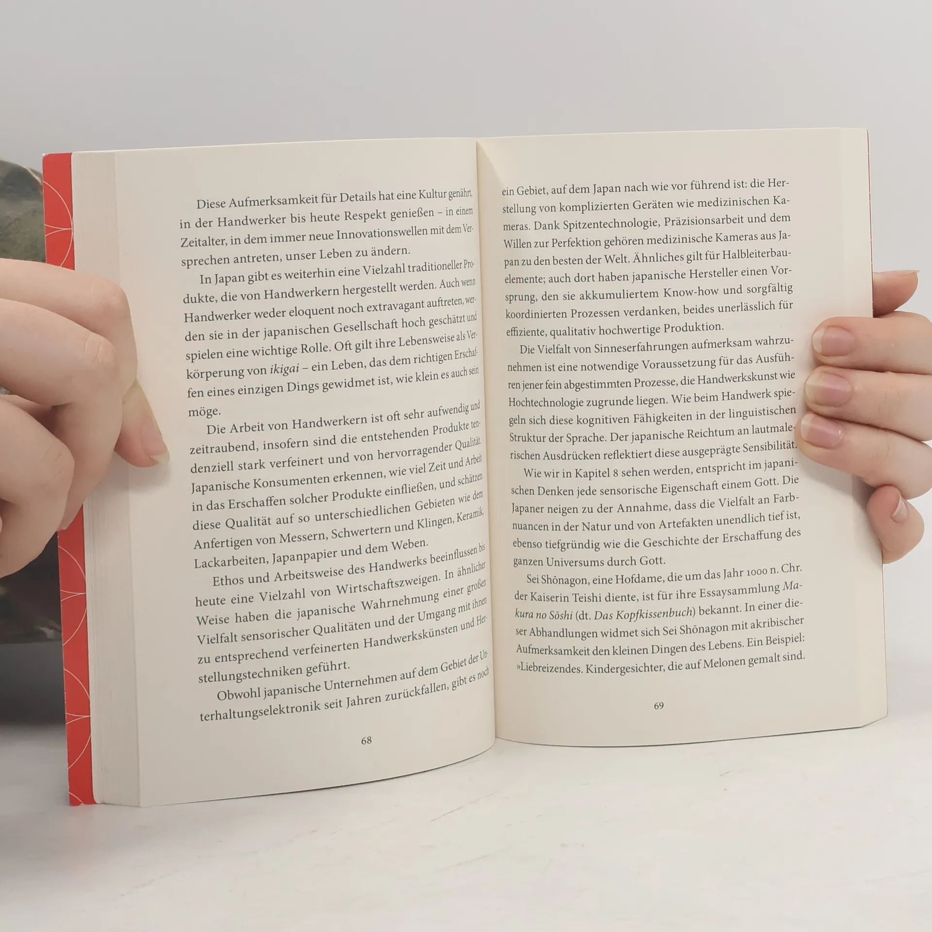 ikigai ist »das, wofür es sich zu leben lohnt« Ob die Obstbauern von Sembikiya, der Keramiker Sokichi Nagae oder der 92-jährige Jiro Ono, der älteste mit drei Michelin-Sternen ausgezeichnete Koch: Sie alle haben ihr ikigai gefunden und damit Sinn und Freude im Leben. Anhand dieser und anderer inspirierender Lebensgeschichten und fundiert durch wissenscha liche Erkenntnisse erklärt der japanische Neurowissenschaftler Ken Mogi die japanische Philosophie, die hilft, Erfüllung, Zufriedenheit und Achtsamkeit im Leben zu finden. Er gewährt zudem tiefe Einblicke in die japanische Kultur, in der das Verständnis von ikigai allgegenwärtig ist. Japaner trachten danach, ihr ikigai zu finden und zu leben – egal, ob in der Karriere, in den Beziehungen zu Freunden und der Familie oder in ihren akribisch gepflegten Hobbys. Dabei ist entscheidend, dass man sein Ziel mit Hingabe verfolgt und das, was man tut, um seiner selbst willen tut. Die Fünf Säulen des ikigai: 1. Klein anfangen 2. Loslassen lernen 3. Harmonie und Nachhaltigkeit leben 4. Die Freude an kleinen Dingen entdecken 5. Im Hier und Jetzt sein