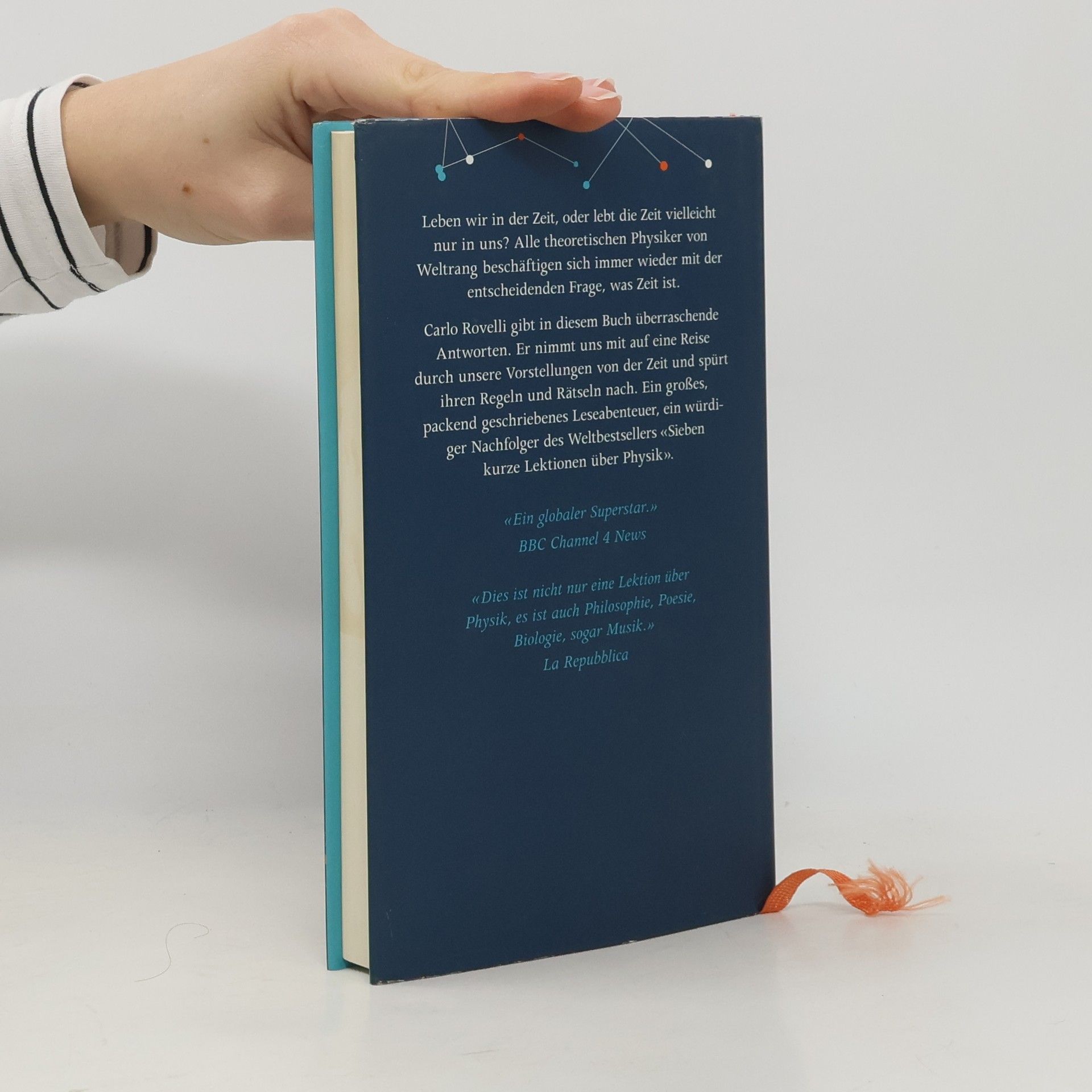 Warum stehen wir mit den Füßen auf dem Boden? Newton meinte, weil sich Massen anziehen, Einstein sagte, weil sich die Raumzeit krümmt. Carlo Rovelli hat eine andere Erklärung: vielleicht ja deshalb, weil es uns immer dorthin zieht, wo die Zeit am langsamsten vergeht. Wenn, ja wenn es so etwas wie Zeit überhaupt gibt. Kaum etwas interessiert theoretische Physiker von Rang so sehr wie der Begriff der Zeit. Leben wir in der Zeit oder lebt die Zeit vielleicht nur in uns? Warum der physikalische Zeitbegriff immer weiter verschwimmt, je mehr man sich ihm nähert, warum es im Universum keine allgemeine Gegenwart gibt, warum die Welt aus Geschehnissen besteht und nicht aus Dingen und warum wir Menschen dennoch gar nicht anders können, als ein Zeitbewusstsein zu entwickeln: Rovelli nimmt uns mit auf eine Reise durch unsere Vorstellungen von der Zeit und spürt ihren Regeln und Rätseln nach. Ein großes, packend geschriebenes Leseabenteuer, ein würdiger Nachfolger des Weltbestsellers «Sieben kurze Lektionen über Physik».
