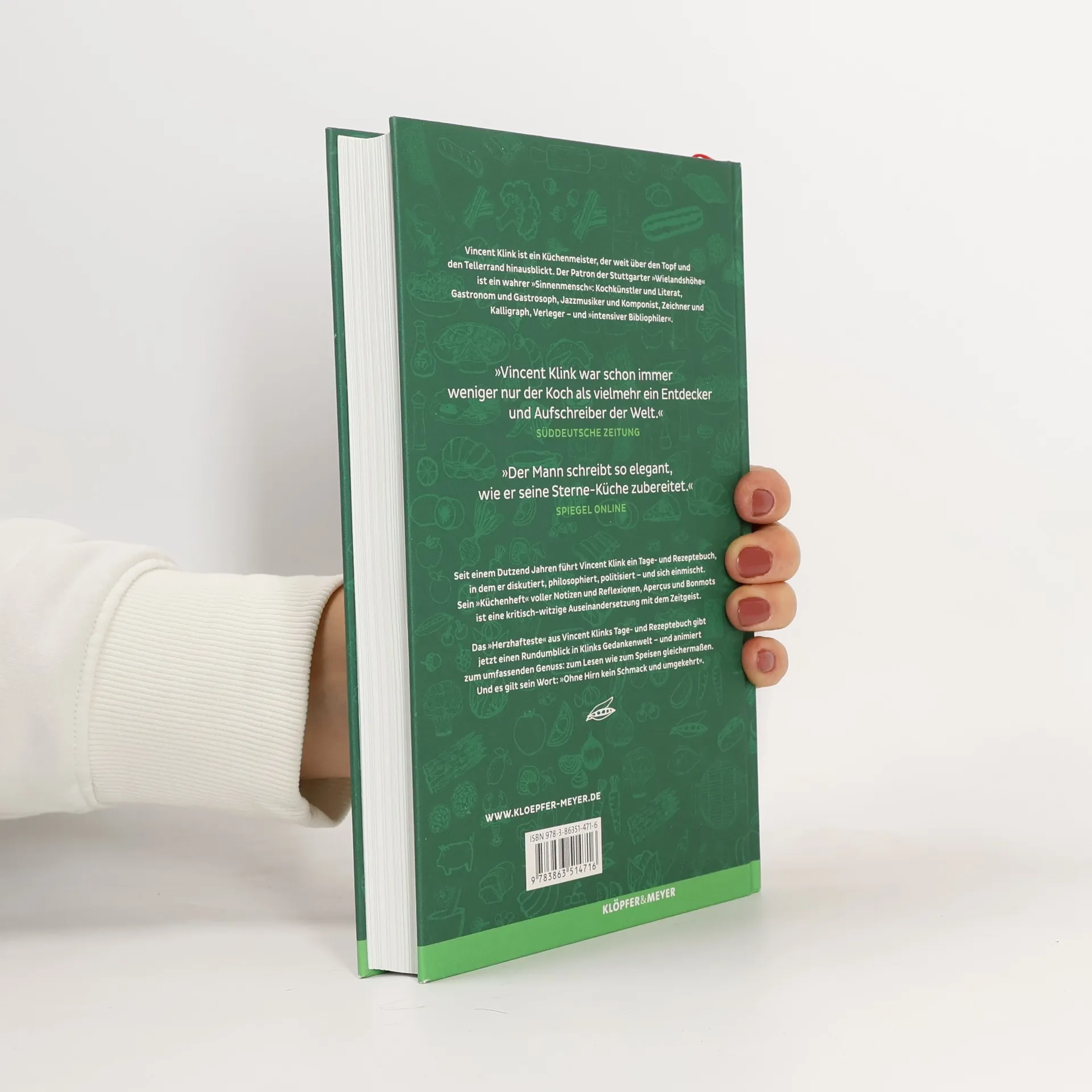 Vincent Klink ist ein Küchenmeister, der weit über den Topf und den Tellerrand hinausblickt. Der Patron der Stuttgarter »Wielandshöhe« ist ein Multitalent, Kochkünstler und Literat, Gastronom und Gastrosoph, Jazzmusiker und Komponist, Zeichner und Kalligraph, Verleger – und »intensiver Bibliophiler«. Seit einem Dutzend Jahren führt Vincent Klink ein Tage- und Rezeptebuch, in dem er politisiert und philosophiert, diskutiert und interveniert. Er nimmt die Lebensmittelindustrie und Stuttgart 21 aufs Korn, gibt Tipps für Bücher und Restaurants, berichtet von Begegnungen mit Prominenten und von seiner Küchenbrigade, stellt jahreszeitliche Einkäufe und Rezepte vor. Klinks »Küchenkladde« voller Notizen und Reflexionen, Aperçus und Bonmots ist eine kritische Auseinandersetzung mit dem Zeitgeist und aufklärerische Stellungnahme zu Fragen der Zeit. Das »Herzhafteste« aus seinem »Tage- und Rezeptebuch« gibt einen Einblick in Klinks Gedankenwelt – und animiert zum umfassenden Genuss, zum Lesen wie zum Speisen gleichermaßen. Und es gilt sein Wort: »Ohne Hirn kein Schmack und umgekehrt.«