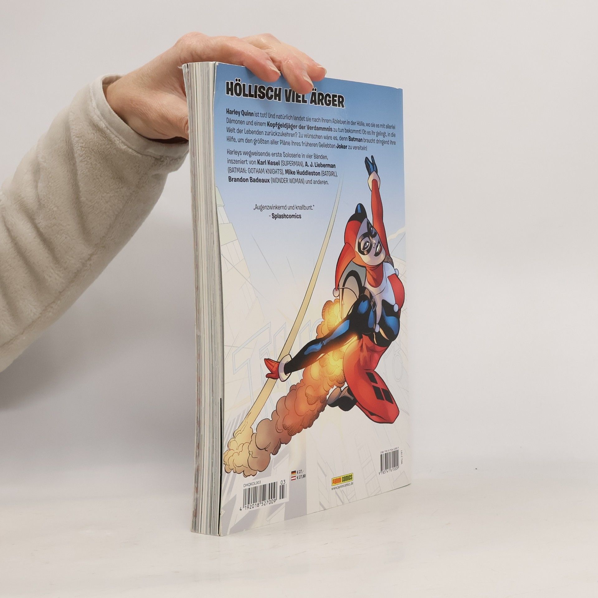 HÖLLISCH VIEL ÄRGER Harley Quinn ist tot! Und natürlich landet sie nach ihrem Ableben in der Hölle, wo sie es mit allerlei Dämonen und einem Kopfgeldjäger der Verdammnis zu tun bekommt! Ob es ihr gelingt, in die Welt der Lebenden zurückzukehren? Zu wünschen wäre es, denn Batman braucht dringend ihre Hilfe, um den größten aller Pläne ihres früheren Geliebten Joker zu vereiteln! Harleys wegweisende erst Soloserie in vier Bänden, inszeniert von Karl Kesel (SUPERMAN), A. J. Lieberman (BATMAN: GOTHAM KNIGHTS), Mike Huddleston (BATGIRL), Brandon Badeaux (WONDER WOMAN) und anderen.