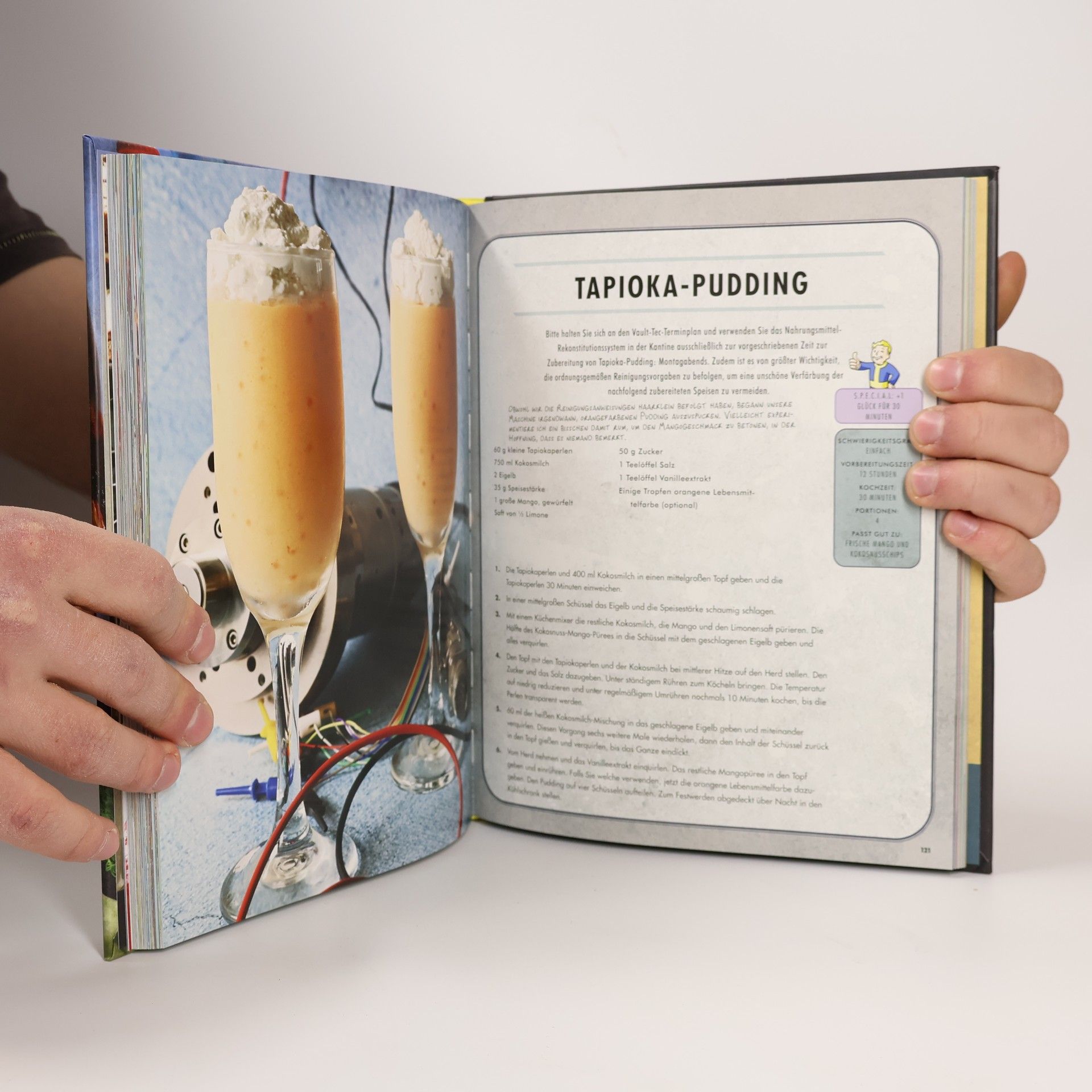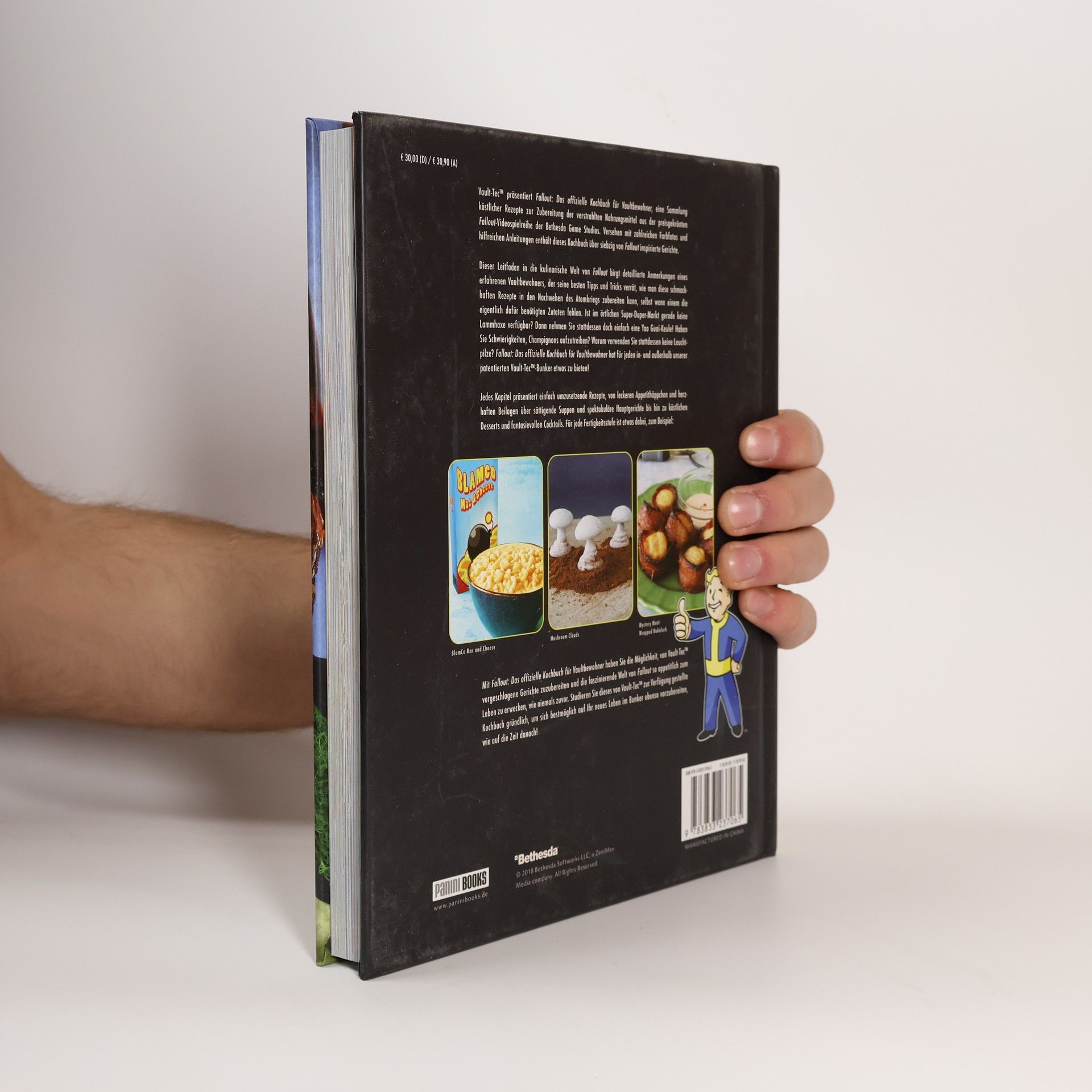 Vault-Tec™ präsentiert eine Sammlung köstlicher Rezepte aus der Fallout-Videospielreihe der Bethesda Game Studios. Mit zahlreichen Farbfotos und hilfreichen Anleitungen bietet dieses Kochbuch über siebzig von Fallout inspirierte Gerichte. Es enthält detaillierte Anmerkungen eines erfahrenen Vaultbewohners, der Tipps und Tricks verrät, um schmackhafte Rezepte in der post-apokalyptischen Welt zuzubereiten, selbst wenn die benötigten Zutaten fehlen. Ist im Super-Duper-Markt keine Lammhaxe verfügbar? Nutzen Sie stattdessen eine Yao Guai-Keule! Schwierigkeiten mit Champignons? Leuchtpilze sind eine kreative Alternative. Jedes Kapitel präsentiert einfach umzusetzende Rezepte, von Appetithäppchen und Beilagen über Suppen und Hauptgerichte bis hin zu Desserts und Cocktails. Für jede Fertigkeitsstufe gibt es etwas, wie BlamCo Makkaroni Käse oder Atompilze. Mit diesem Kochbuch haben Sie die Möglichkeit, von Vault-Tec™ empfohlene Gerichte zuzubereiten und die faszinierende Welt von Fallout appetitlich zum Leben zu erwecken. Studieren Sie das Kochbuch gründlich, um sich optimal auf Ihr neues Leben im Bunker und die Zeit danach vorzubereiten!