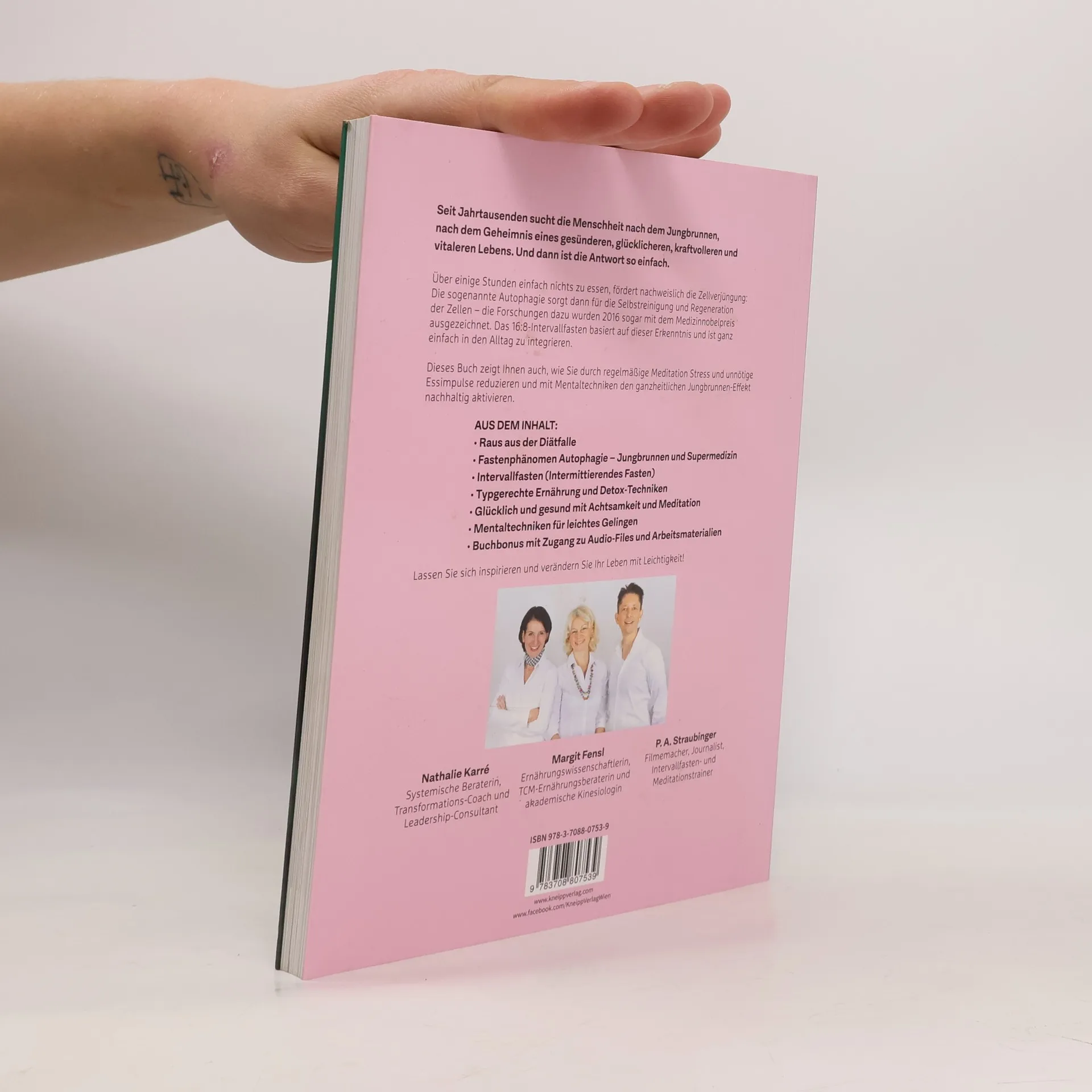Seit Jahrtausenden sucht die Menschheit nach dem Jungbrunnen, nach dem Geheimnis eines gesünderen, glücklicheren, kraftvolleren und vitaleren Lebens. Und dann ist die Antwort so einfach. Über einige Stunden einfach nichts zu essen, fördert nachweislich die Zellverjüngung: Die sogenannte Autophagie sorgt dann für die Selbstreinigung und Regeneration der Zellen – die Forschungen dazu wurden 2016 sogar mit dem Medizinnobelpreis ausgezeichnet.Das 16:8-Intervallfasten basiert auf dieser Erkenntnis und ist ganz einfach in den Alltag zu integrieren. Dieses Buch zeigt Ihnen auch, wie Sie durch regelmäßige Meditation Stress und unnötige Essimpulse reduzieren und mit Mentaltechniken den ganzheitlichen Jungbrunnen-Effekt nachhaltig aktivieren. AUS DEM INHALT:- Raus aus der Diätfalle- Fastenphänomen Autophagie – Jungbrunnen und Supermedizin- Intervallfasten (Intermittierendes Fasten)- Typgerechte Ernährung und Detox-Techniken- Glücklich und gesund mit Achtsamkeit und Meditation- Mentaltechniken für leichtes Gelingen- Buchbonus mit Zugang zu Audio-Files und Arbeitsmaterialien