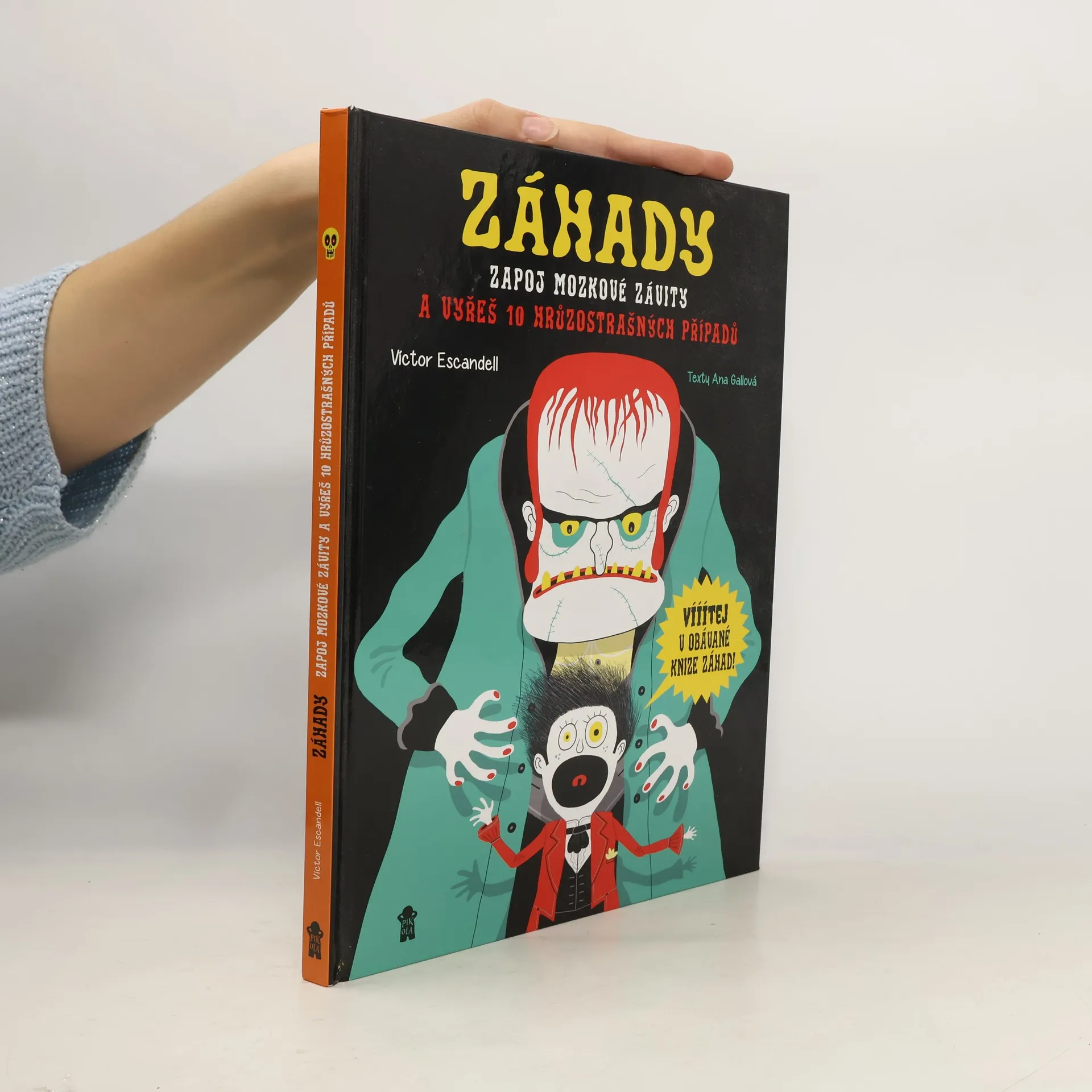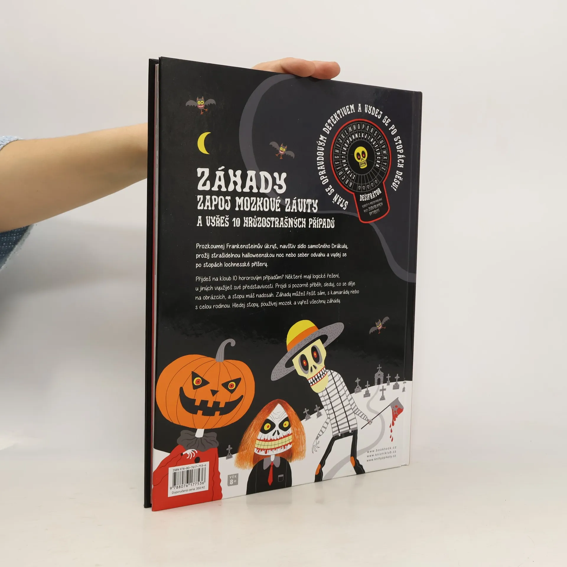 Vítej v obávané knize záhad! Přijdeš na kloub poutavým záhadám, které se hemží hrůzostrašnými persónami? V hlavních rolích se představí Frankenstein, čarodějnice s pořádnými bradavicemi, mumie, vlkodlak a další úžasné bytosti, které tě provedou světem přímo hororovým! Některé záhady mají logické řešení, u jiných využiješ své představivosti. Hledej v zábavných obrázcích, a stopu máš nadosah. Záhady můžeš řešit sám, s kamarády nebo s celou rodinou. Staň se opravdovým detektivem! Hledej stopy, používej mozek a vyřeš všechny záhady. Věnováno dětem od 8 let a jejich rodičům, kteří mají chuť přicházet na kloub záhadám a bát se!