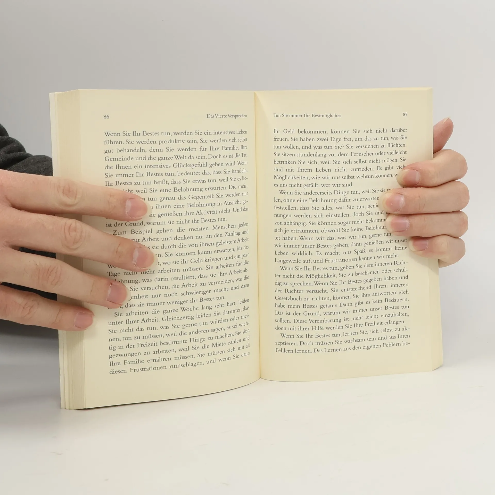 Himmel und Hölle sind in uns. Jeden Moment entscheiden wir selbst darüber, in welcher Wirklichkeit wir leben. Alles hängt davon ab, an welche Überzeugungen, Vereinbarungen und Versprechen wir uns halten. Als Meister toltekischer Tradition und Weisheit enthüllt Don Miguel Ruiz einen praktischen und leicht nachvollziehbaren Weg, um uns aus dem kollektiven Alptraum von Angst, Mißbrauch und Gewalt zu befreien und in unserem Leben immer mehr Freiheit, Freude und Liebe zu verwirklichen. Vier einfache, aber kraftvolle Versprechen sind der Schlüssel zur inneren Transformation