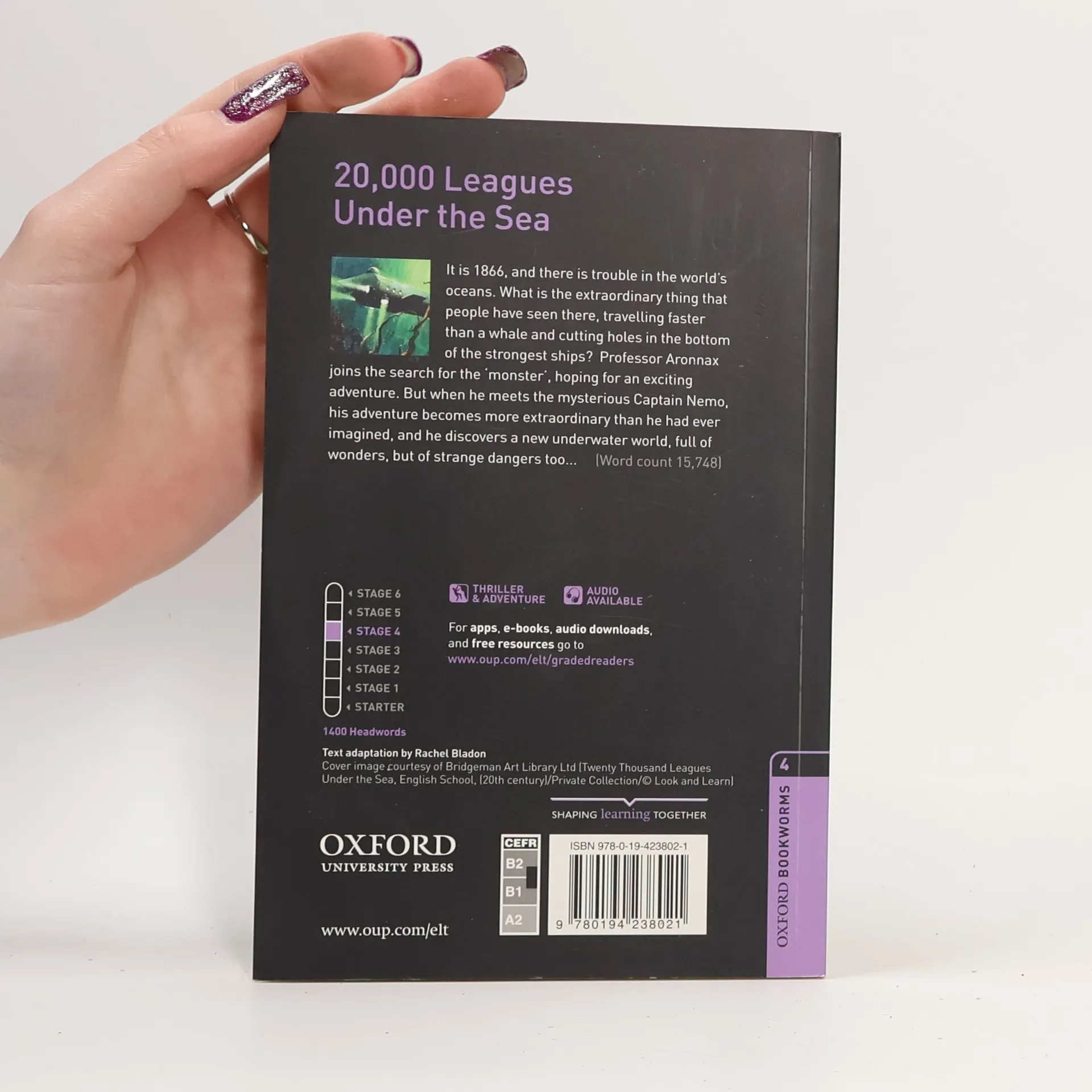 Classics, modern fiction, non-fiction and more. Written for secondary and adult students the Oxford Bookworms Library has seven reading levels from A1-C1 of the CEFR.It is 1866, and there is trouble in the world's oceans. What is the extraordinary thing that people have seen there, travelling faster than a whale and cutting holes in the bottom of the strongest ships? Dr Aronnax joins the search for the 'monster', hoping for an exciting adventure. But when he meets the mysterious Captain Nemo, his adventure becomes more extraordinary than he had ever imagined, and he discovers a new underwater world, full of wonders, but of strange dangers too...
