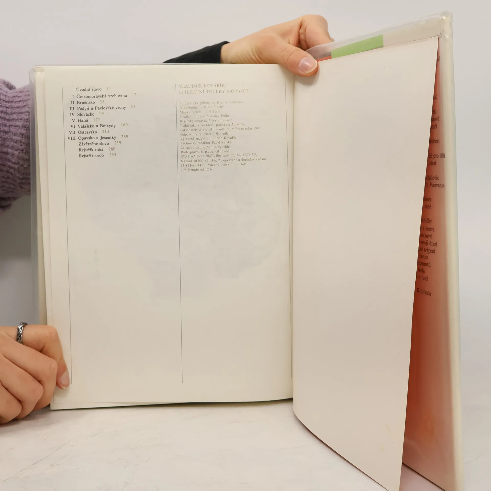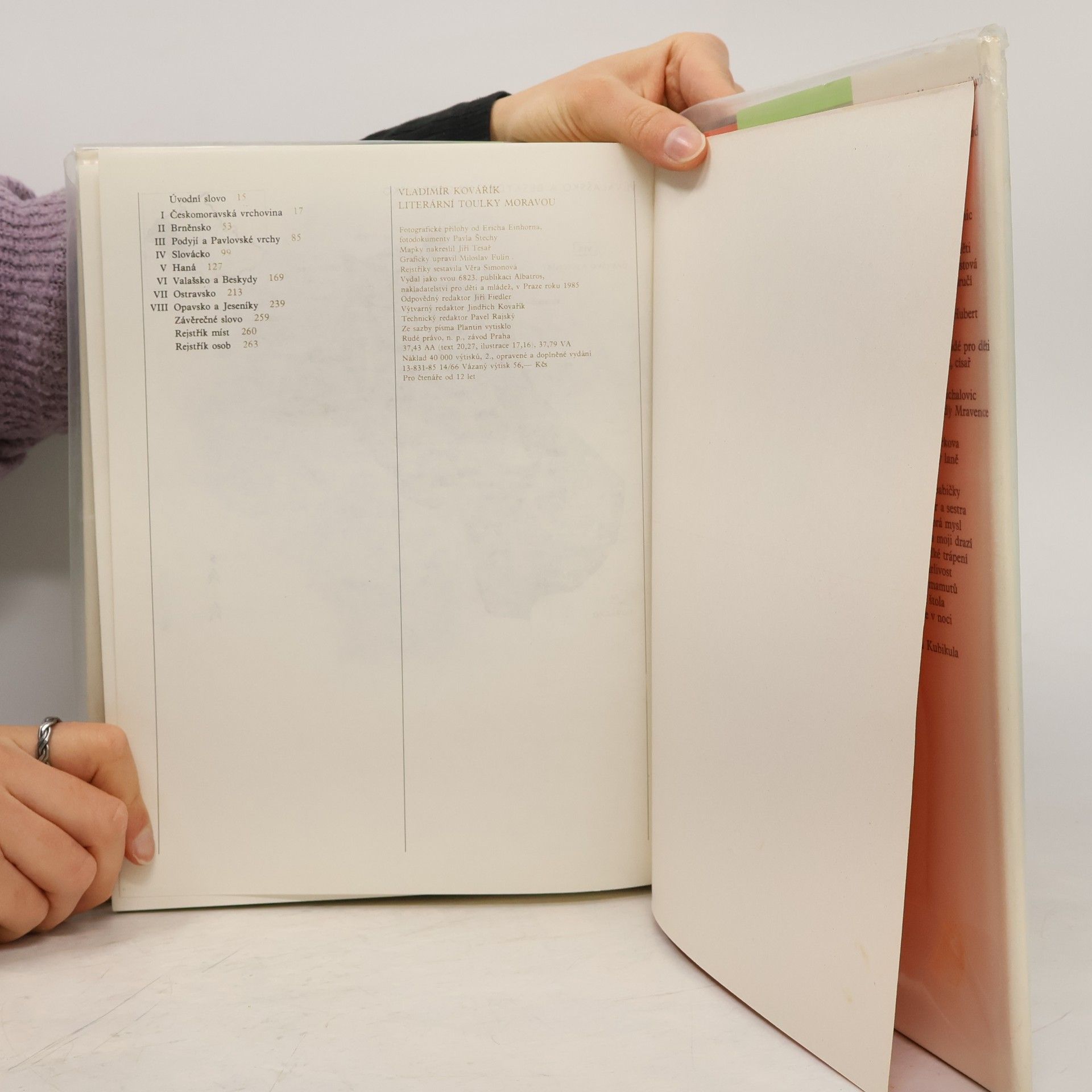 Podrobný literární místopis. Území historické Moravy a Slezska je rozděleno na tradiční kulturní a krajinné oblasti. Autor popisuje jednotlivé obce a vypráví o vztahu míst k naší i světové literatuře. Jde o rodiště a bydliště spisovatelů, o dějiště literárních děl a dnes už zapomenuté osoby, které byly živými předlohami postav literárních, o zobrazení rodného či líbezného kraje našimi spisovateli a básníky.