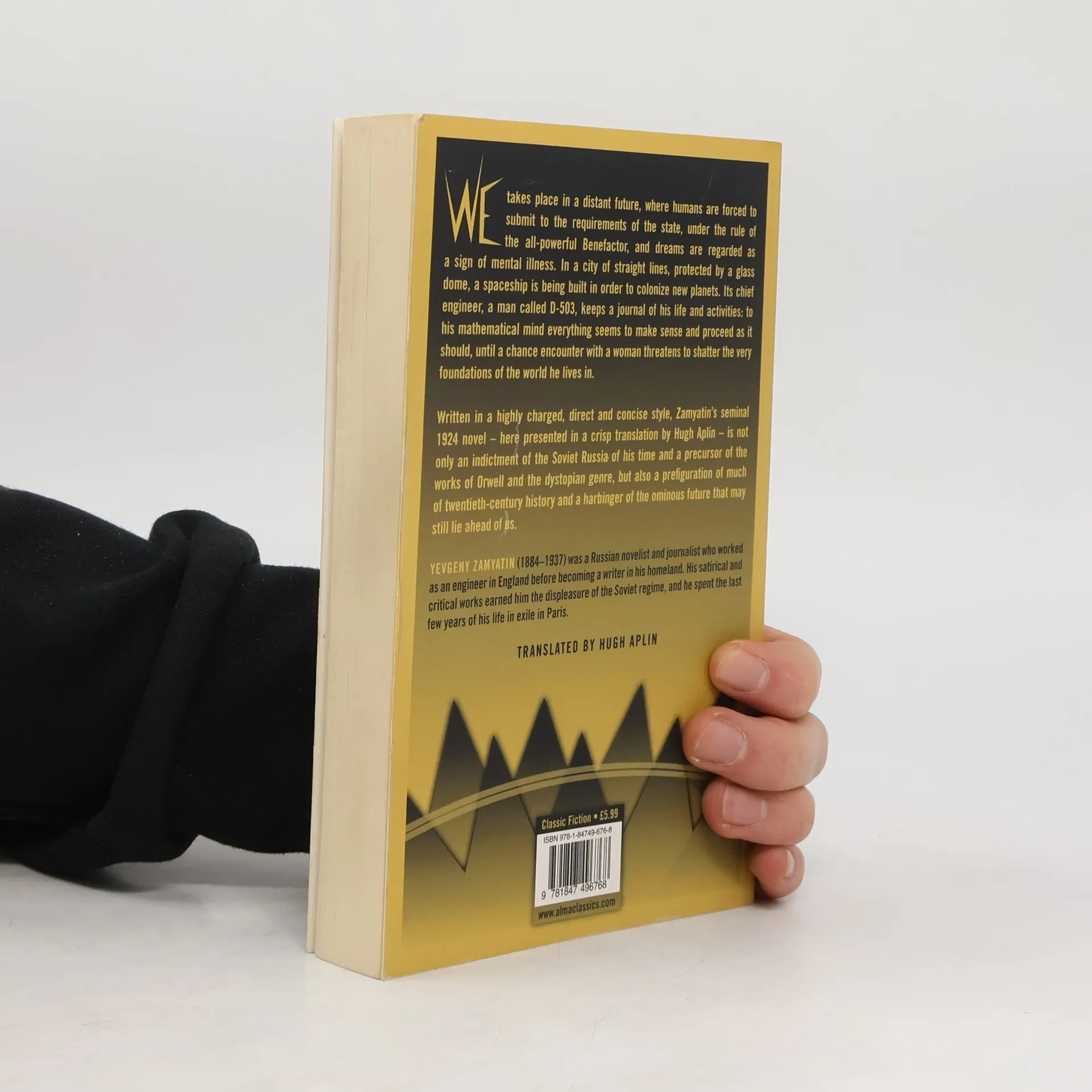 We takes place in a distant future, where humans are forced to submit their wills to the requirements of the state, under the rule of the all-powerful Benefactor, and dreams are regarded as a sign of mental illness. In a city of straight lines, protected by green walls and a glass dome, a spaceship is being built in order to spearhead the conquest of new planets. Its chief engineer, a man called D-503, keeps a journal of his life and activities: to his mathematical mind everything seems to make sense and proceed as it should, until a chance encounter with a woman threatens to shatter the very foundations of the world he lives in. Written in a highly charged, direct and concise style, Zamyatin's 1921 seminal novel – here presented in Hugh Aplin's crisp translation – is not only an indictment of the Soviet Russia of his time and a precursor of the works of Orwell and the dystopian genre, but also a prefiguration of much of twentieth-century history and a harbinger of the ominous future that may still lay ahead of us.