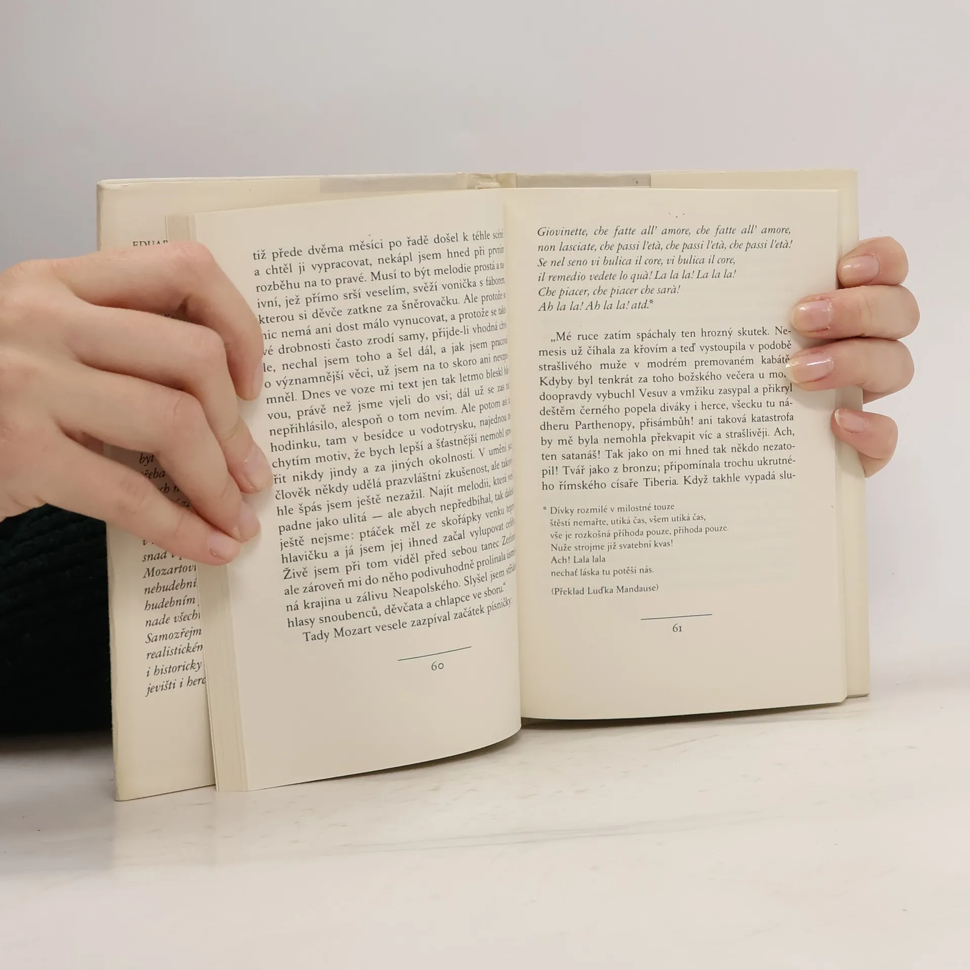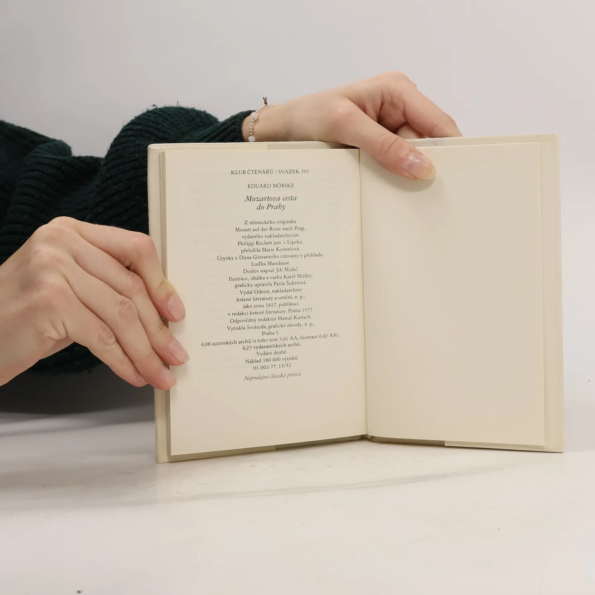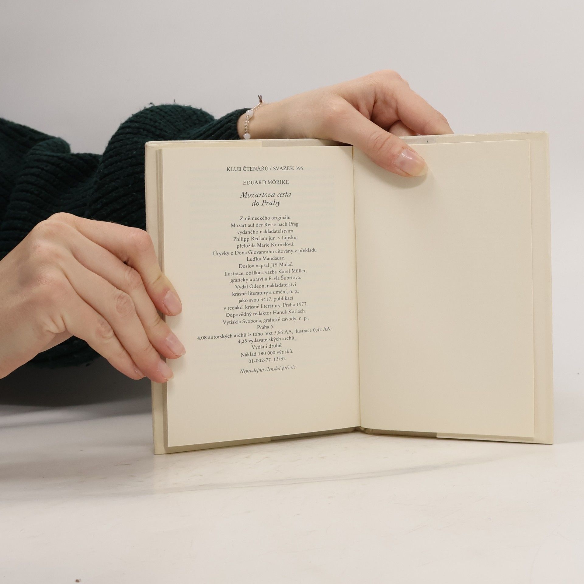 Švábský rodák Eduard Morike je jedním z největších nemeckých lyriků a prozaiků. Jeho tvorba je nevtíravou, jemnou směsí čirého ducha Goethova, rozevláté romantiky i tichého kouzla lidové písně, byť se mu často vyčítalo, že třeba ve svých rozsáhlejších dílech nedospěl k přesvědčivé tvarové zákonitosti. To se mu však nad jiné dařilo v útvarech menších, a nejvíce snad v povídce o milovaném Mozartovi, jejž Mörike, sám nehudebník, leč s velkým hudebním fondem v duši, nade všechny miloval a ctil. Samozřejmě tu vzdor realistickému (a částečně i historicky doložitelnému) jevišti i hercům — novela se vztahuje k jednomu ze čtyř Mozartových pobytů v Čechách — jde převážně o nespoutanou hru básnické obrazivosti, v níž si Mörike velkého skladatele poněkud přizpůsobuje: výsledkem je hravá, úsměvná próza, v níž arci v závěru nechybějí tóny tušeného Mozartova tragického konce. Leckterý puntičkářský muzikolog vznášel a vznáší nejednu námitku, nelze však nevidět, že na hřbitově německé (a nejen německé) literatury je dost hrobů, v nichž zetlely četné, byť historickým faktům bližší mozartovské povídky, romány i verše, a že jen dvě díla z pera německých tvůrců tu přežila dobu svého vzniku — démonické vidění Dona Juana, jež svěřil papíru E. T. A. Hoffmann — a uměřené, líbezné Mörikovo vyprávění o jednom Mozartově putování do Prahy.