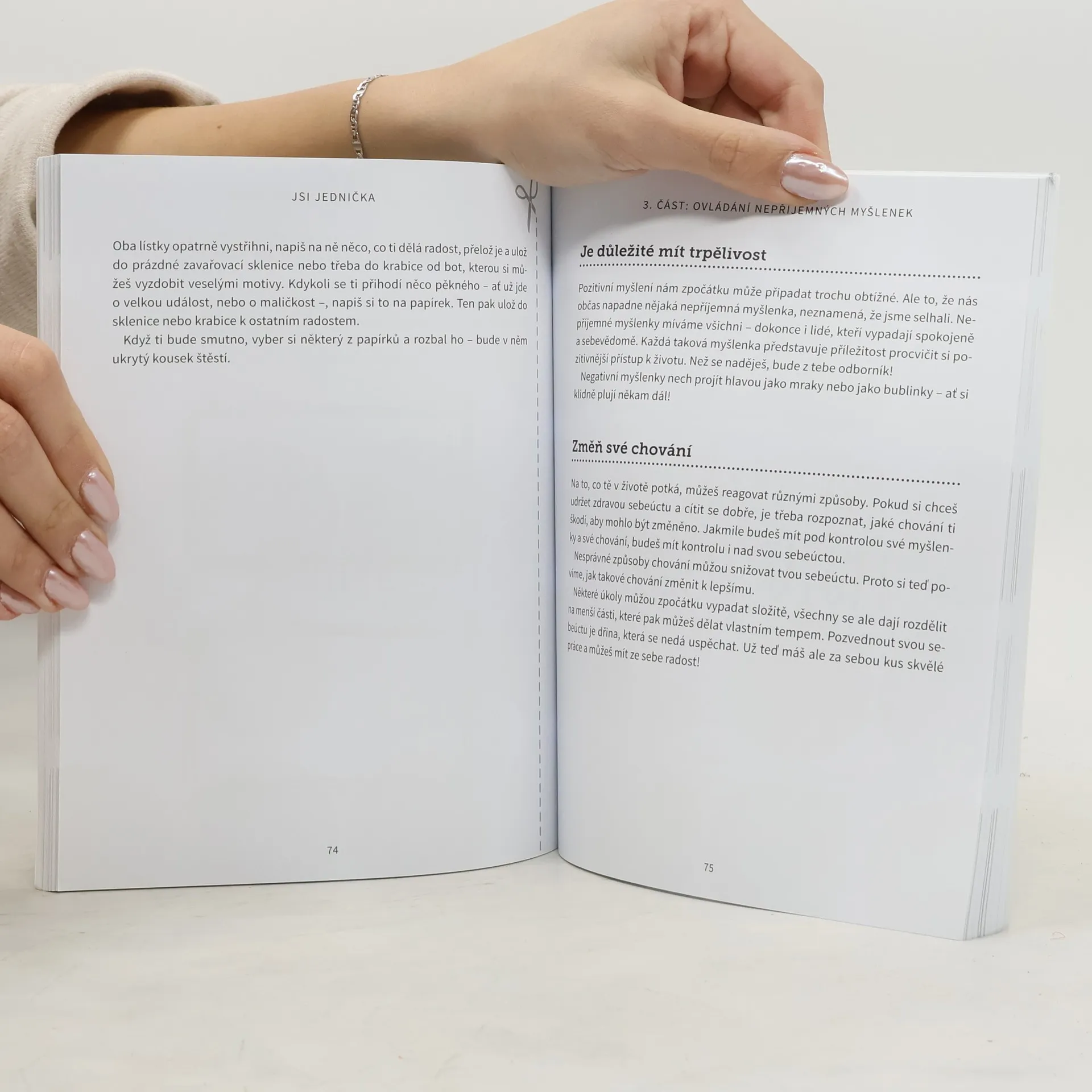 Podtitul: Získej zdravou sebeúctu. Kniha Jsi jednička je určena pro děti ve věku od sedmi do jedenácti let. V tomto období života se odehrává spousta věcí, které mají vliv na pojetí sebeúcty. Vytvářejí se pevná přátelství, dovednosti a znalosti jsou prověřovány prvními zkouškami, děti si začínají výrazně uvědomovat své tělo a srovnávají svůj vzhled se vzhledem ostatních. Mohou se také poprvé setkat se sociálními médii a poprvé zažívat tlak ze strany vrstevníků. Není proto žádným překvapením, že se občas potýkají s potížemi, které u některých dětí mohou ovlivnit pocit sebeúcty.