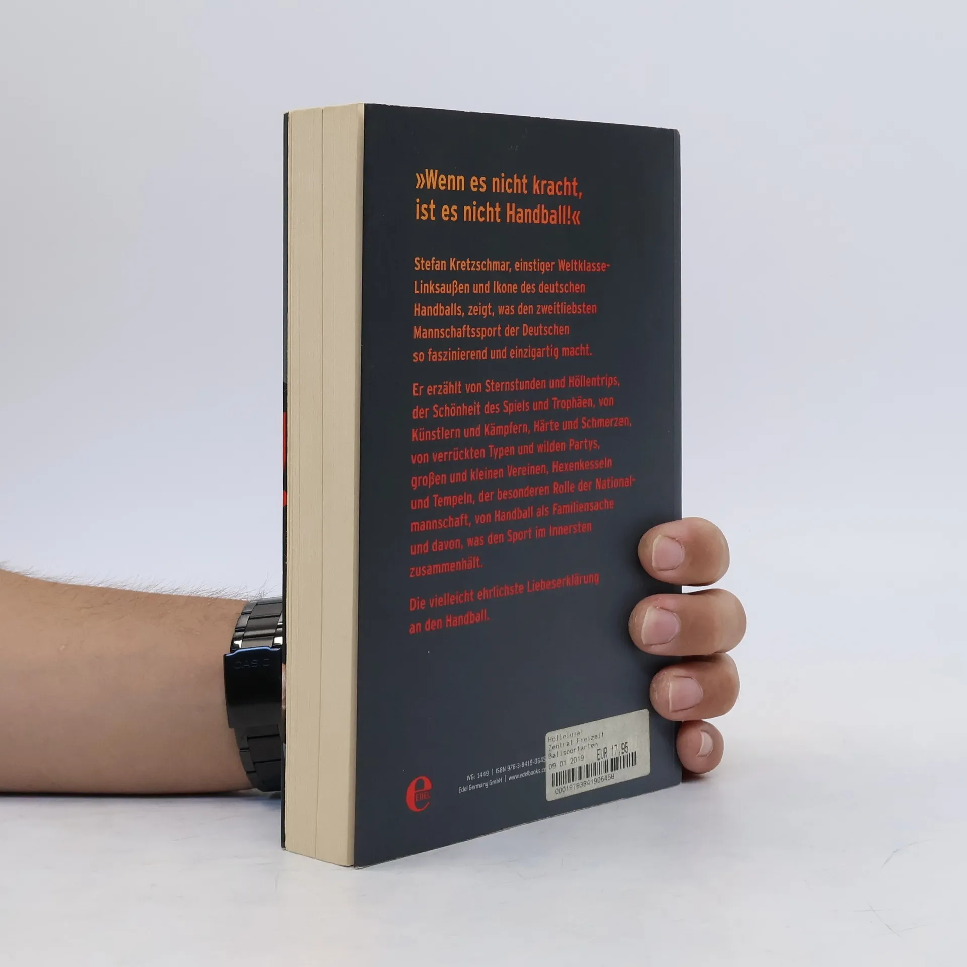 „Wenn es nicht kracht, ist es nicht Handball.“ Stefan Kretzschmar, einstiger Weltklasse-Linksaußen und Ikone des deutschen Handballs, zeigt, was den zweitliebsten Mannschaftssport der Deutschen so faszinierend und einzigartig macht. Er erzählt von Sternstunden und Höllentrips, der Schönheit des Spiels und Trophäen, von Künstlern und Kämpfern, Härte und Schmerzen, von verrückten Typen und wilden Partys, großen und kleinen Vereinen, Hexenkesseln und Tempeln, der besonderen Rolle der Nationalmannschaft, von Handball als Familiensache und davon, was den Sport im Innersten zusammenhält. Der Leser erfährt, warum die entnervten Nachbarn in der elterlichen Berliner Plattenbauwohnung Schuld am Start Stefan Kretzschmars Handballkarriere waren, wie Alfred Gislason es schaffte, ihn trotz Bandscheibenverletzung bei einem Champions-League-Spiel auflaufen zu lassen, oder warum Brustwarzendrehen das Foul für „fortgeschrittene Dreckssäcke“ ist. Die vielleicht ehrlichste Liebeserklärung an den Handball.