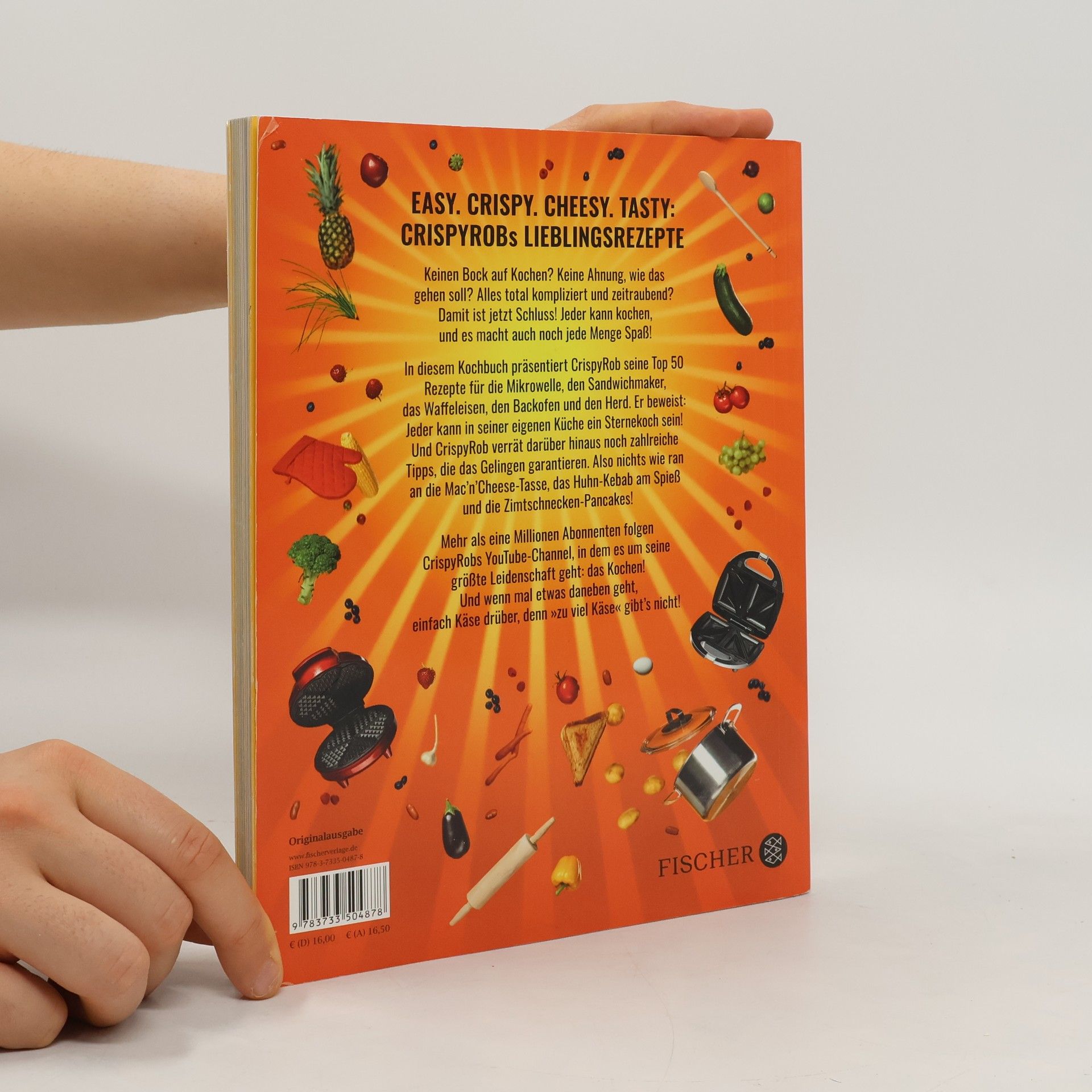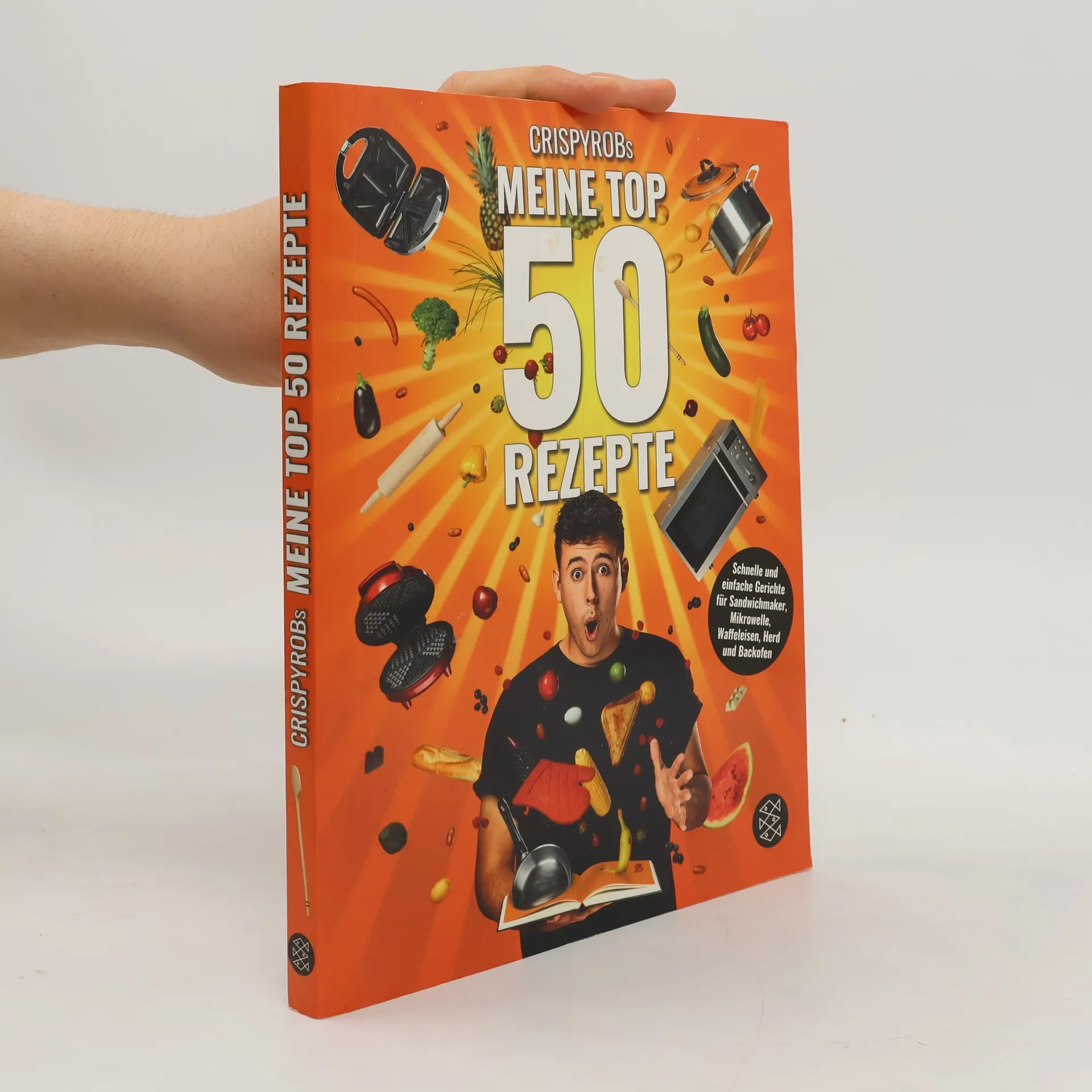 Die Lieblingsrezepte von CrispyRob – endlich als Kochbuch! Angst vorm Kochen? Keine Ahnung, wie das gehen soll? Alles total kompliziert und zeitraubend? Damit ist jetzt Schluss! Das Kochbuch von CrispyRob vereint seine Top 50 Rezepte für die Mikrowelle, den Sandwich-Maker, das Waffeleisen, den Ofen und den Herd. So viel Spaß hat Kochen noch nie gemacht! Und CrispyRob verrät euch darüber hinaus noch zahlreiche Tipps, die das Gelingen garantieren. Also nichts wie ran an die Mac'n'Cheese-Tasse, das Huhn-Kebab am Spieß und die Zimtschnecken-Pancakes! CrispyRob weiß, worüber er schreibt. Mehr als eine Million Abonnenten folgen seinem YouTube-Channel, in dem es vor allem um seine größte Leidenschaft geht: das Kochen! Und wenn mal etwas daneben geht, einfach Käse drüber. Alle Bände der Meine-Top-50-Rezepte-Serie von CrispyRob: »CrispyRobs Meine Top 50 Rezepte. Schnelle und einfache Gerichte für Sandwichmaker, Mikrowelle, Waffeleisen, Herd und Backofen« (Band 1) »CrispyRobs Meine Top 50 Feel Good Rezepte« (Band 2)