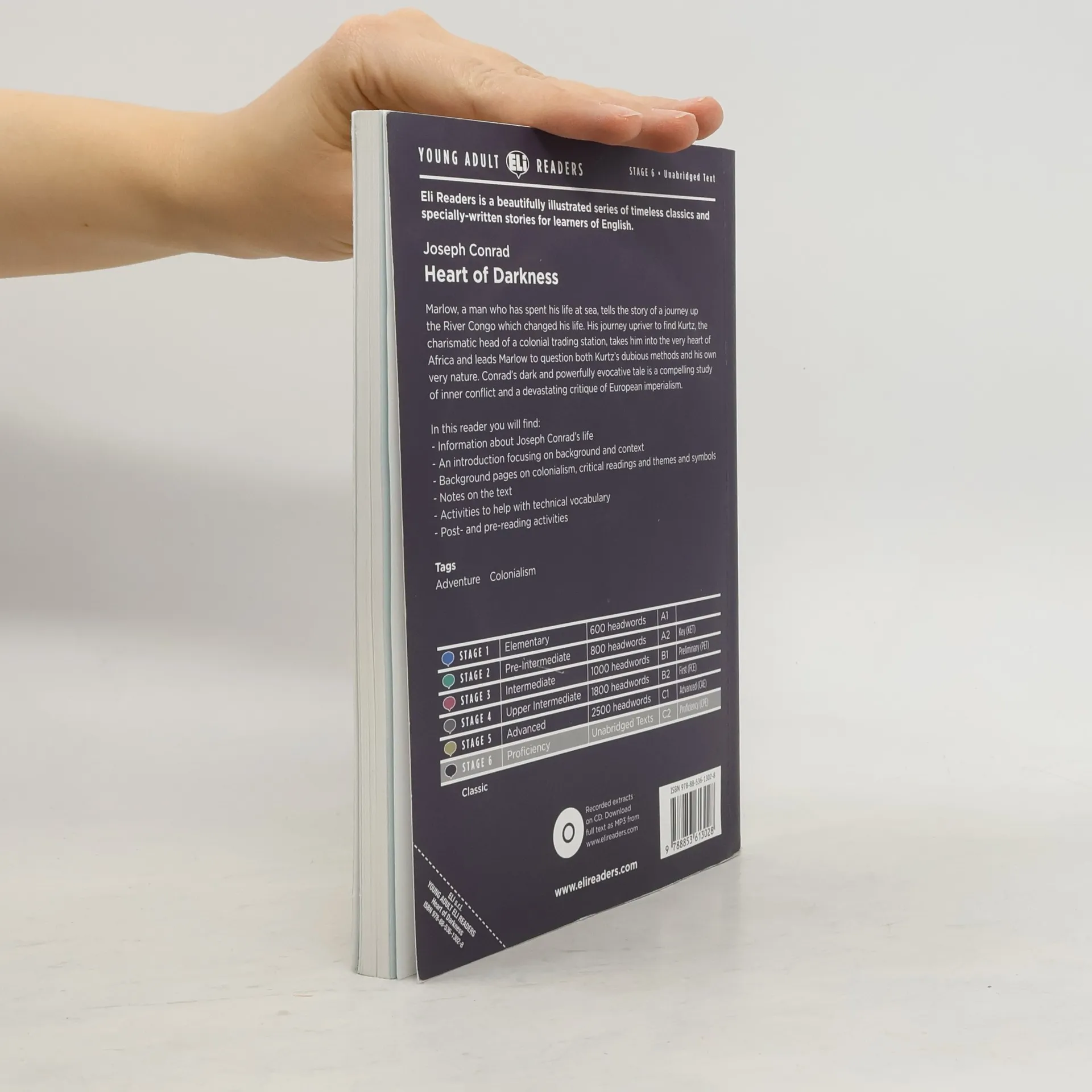 Heart of Darkness is classified by the Modern Library website editors as one of the “100 best novels” and part of the Western canon. In this Reader you will find: Information about Joseph Conrad’s life | An introduction focusing on background and context | Focus pages on colonialism, critical readings and themes and symbols | Notes on the text | Activities to help with technical vocabulary | Post- and pre-reading activities Tags Classic Marlow, a man who has spent his life at sea, tells the story of a journey up the River Congo which changed his life. His journey upriver to find Kurtz, the charismatic head of a colonial trading station, takes him into the very heart of Africa and leads Marlow to question both Kurtz’s dubious methods and his own very nature. Conrad’s dark and powerfully evocative tale is a compelling study of inner conflict and a devastating critique of European imperialism.
