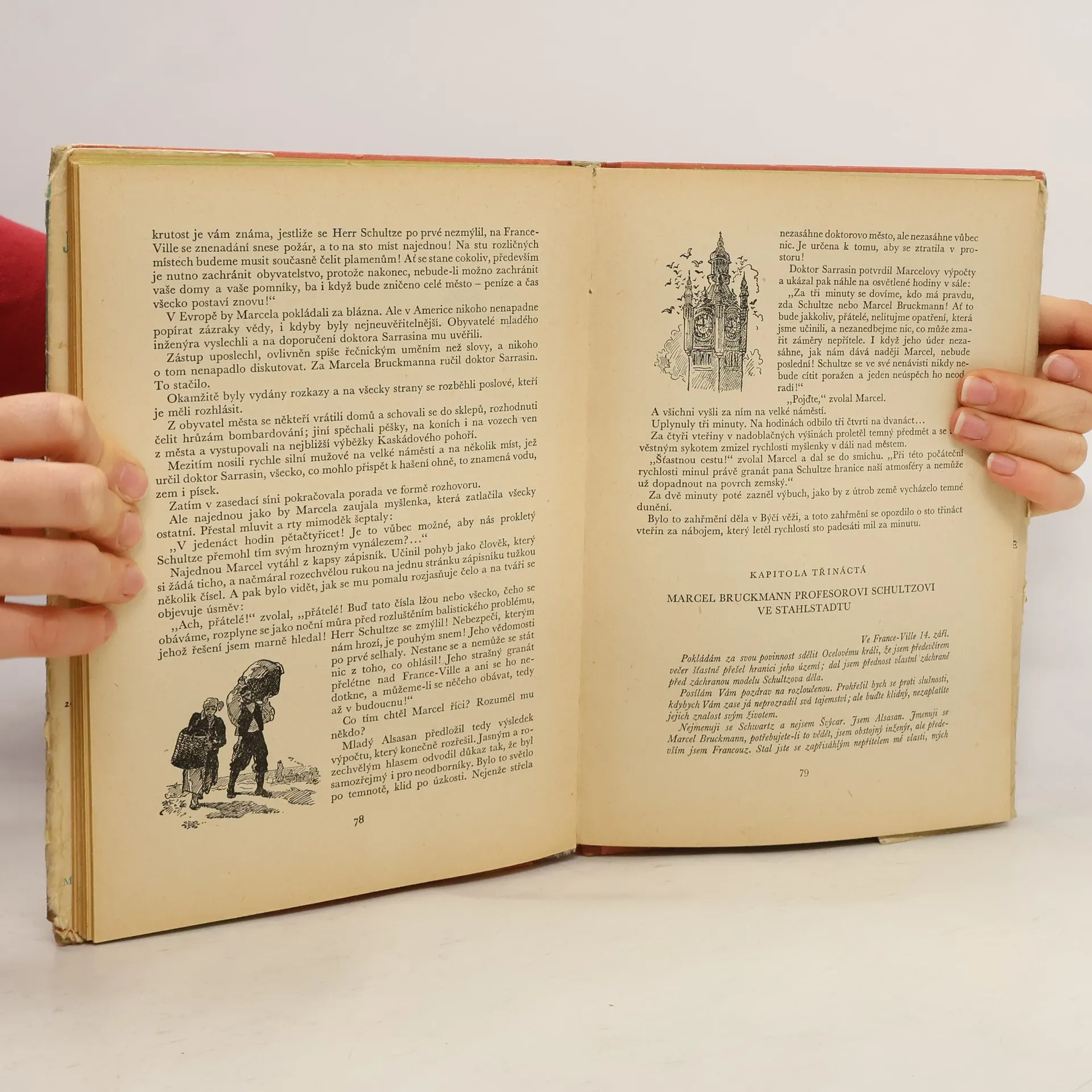 Fantastický román o soupeření francouzského a německého vědce. Prvý vybuduje v Americe Francouzské město jako vzor všestranného pokroku, Němec postaví Ocelové město, ohromnou továrnu, v níž hromadí vynálezy zkázy, a chystá se zničit dílo francouzského soupeře. Místo toho zničí sebe.Nechtěným úspěchem Němce je vystřelení dělového náboje, který překoná zemskou přitažlivost a změní se v družici Země..