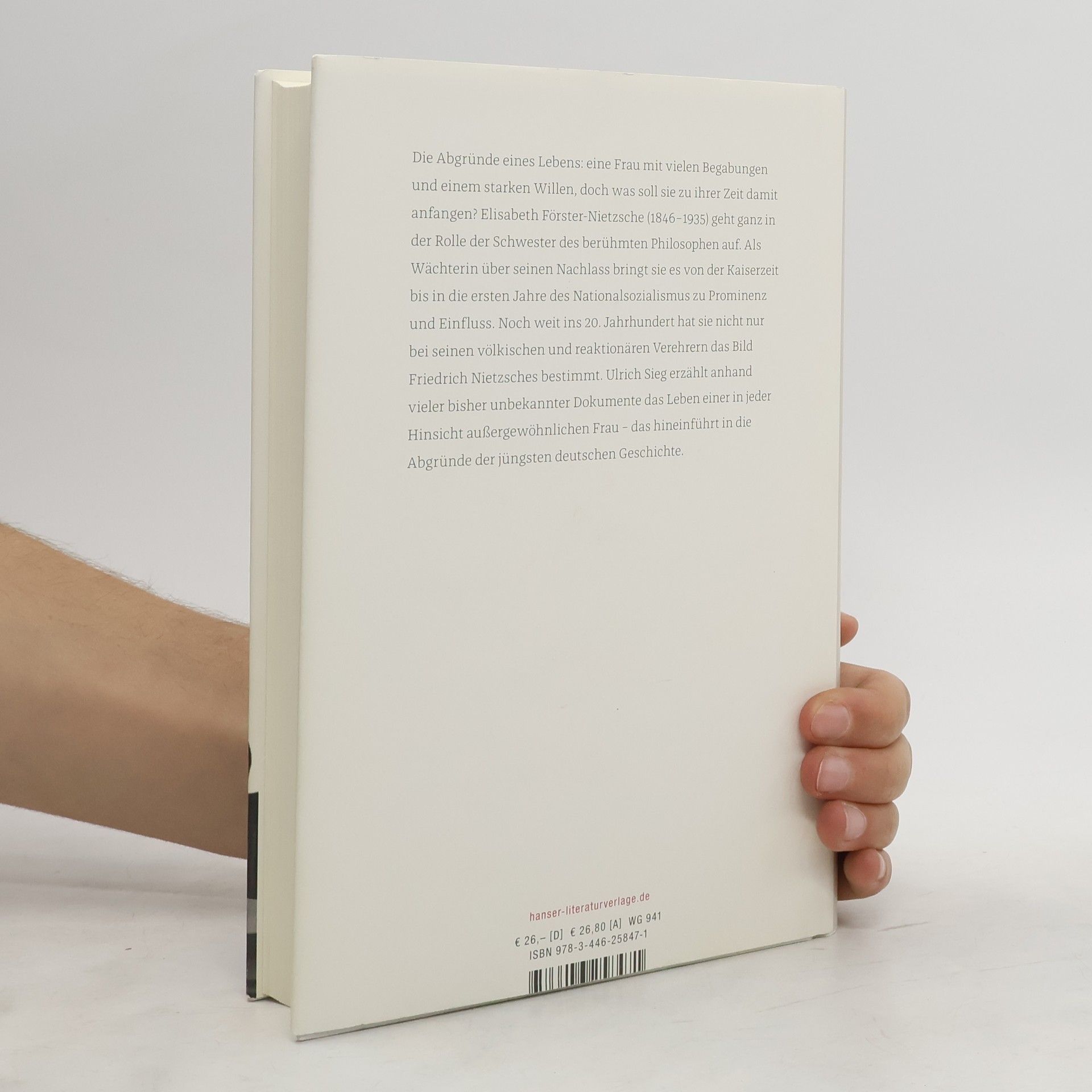 Sie war intelligent, durchsetzungsfähig und konnte Menschen begeistern. Elisabeth Förster-Nietzsche (1846–1935) aber ging in die Geschichte ein als die Frau, die die Schriften ihres Bruders verfälschte und sein Denken den Nationalsozialisten andiente. Ulrich Sieg hat eine Vielzahl unbekannter Dokumente entdeckt. Sie zeigen eine Frau, die ihren Ehrgeiz nur in der Rolle der Schwester ausleben konnte. Höchst erfolgreich publizierte sie den Nachlass ihres Bruders. Das Nietzsche-Archiv entwickelte sich zu einem Treffpunkt der Gelehrten, freilich kam auch Hitler zu Besuch. Eine dramatische Geschichte der Ideen, der Politik – und eines höchst ungewöhnlichen Geschwisterpaars.