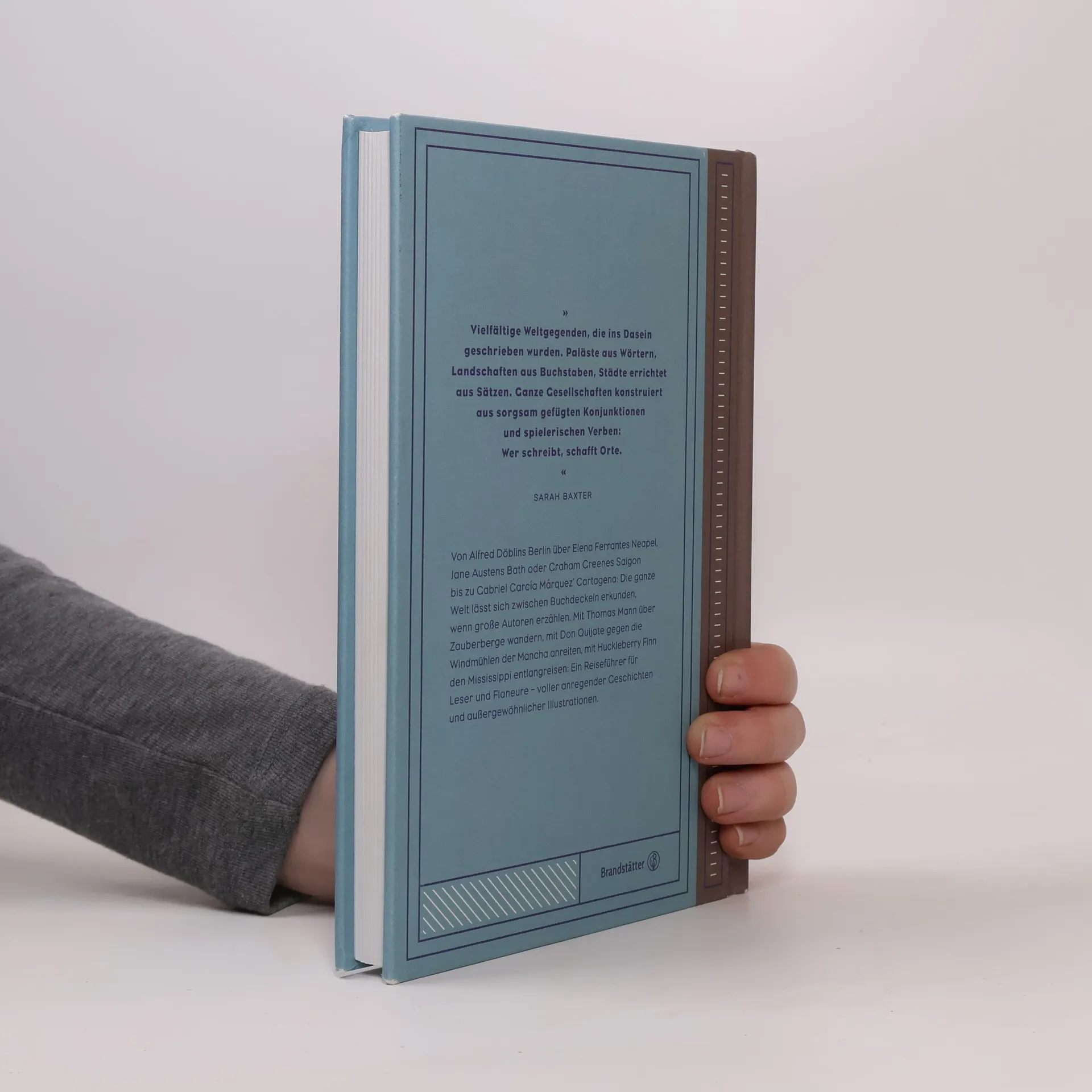 Die wichtigsten Bücher der Literaturgeschichte spielen auf der ganzen Welt. Sarah Baxter bereist in ihrem neuen Buch literarische Orte rund um den Globus: Pulsierende Städte voller Urbanität, Plätze spiritueller Ruhe und Zurückgezogenheit, spektakuläre Landschaften, unberührte Natur, Plätze, die Weltliteratur inspiriert haben. Wir entdecken die Weiten von La Mancha mit Don Quixote, besuchen Clara del Valle im Geisterhaus in Santiago, spazieren über den Alexanderplatz in Berlin oder streifen mit Cathy und Heathcliff durch das Moor von Yorkshire. Jeder Ort hat eine besondere Geschichte: Baxter verknüpft die Geschichte und Kultur des realen Ortes mit seiner literarischen Wirkung bis in unsere Gegenwart. Handgemalte Illustration mit liebevollen Details komplettieren diese Liebeserklärung an die Phantasie. Eine Reise durch die Welt der Literatur zum Nachschmökern, Mitreisen und Weiterlesen.