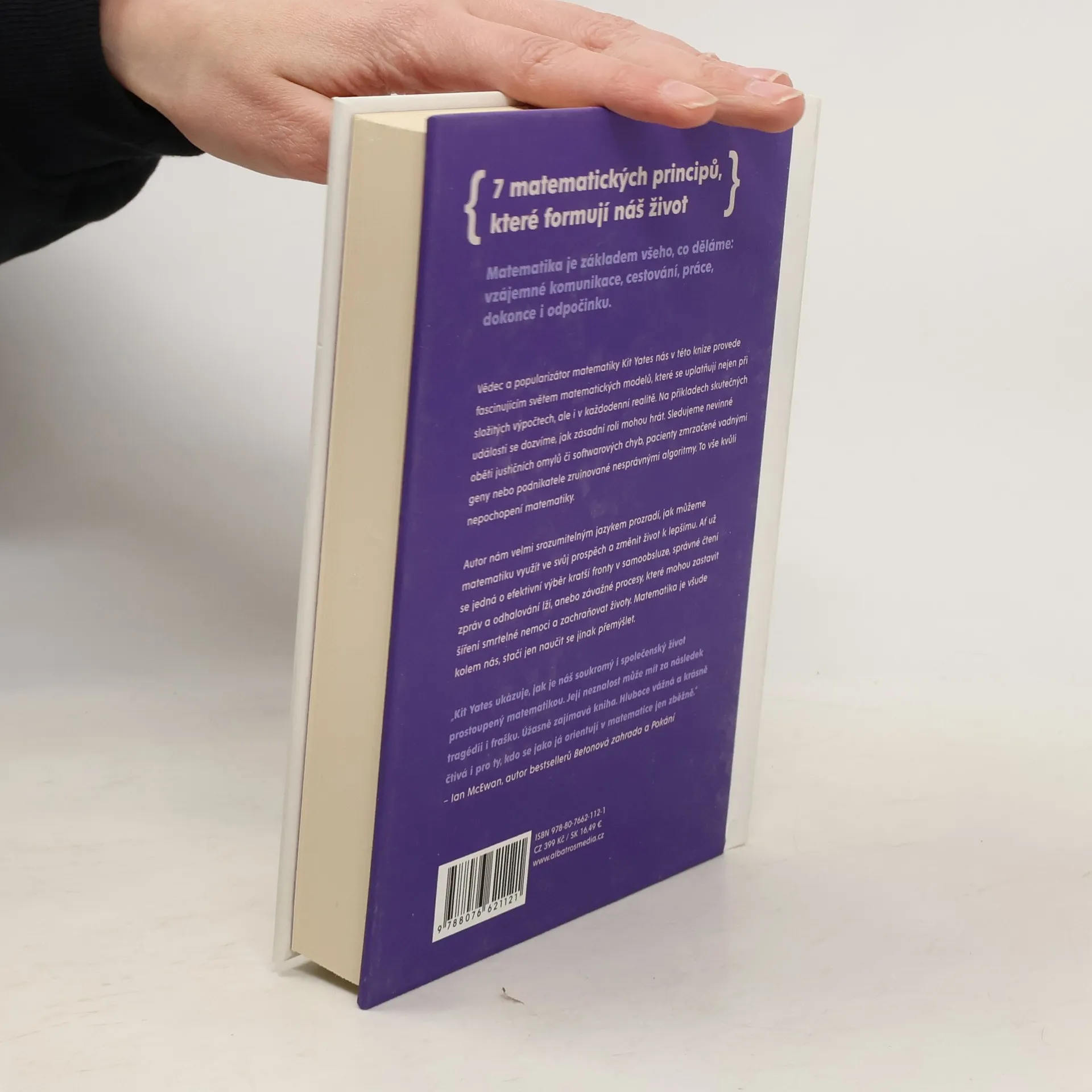 Matematika je všude kolem nás, stačí se jen naučit jinak přemýšlet. Matematika je základem všeho, co děláme. Od způsobu, jakým komunikujeme, jak cestujeme a pracujeme až po způsob, jak odpočíváme. Autor poutavě osvětluje, jaké matematické principy formují naše každodenní životy, a zkoumá jejich mnohdy zásadní roli na příkladech skutečných událostí. Sledujeme nevinné oběti justičních omylů či softwarových chyb, pacienty zmrzačené vadnými geny nebo podnikatele zruinované nesprávnými algoritmy – to vše kvůli nepochopení matematiky. Kit Yates nám v této knize velmi srozumitelným způsobem ukáže, jak můžeme matematiky využít v náš prospěch. Jak nám matematika může změnit život k lepšímu, jak se vyvarovat omylů, jak zachraňovat životy nebo jak číst zprávy a odhalovat lži. Matematika je všude kolem nás, stačí se jen naučit jinak přemýšlet.