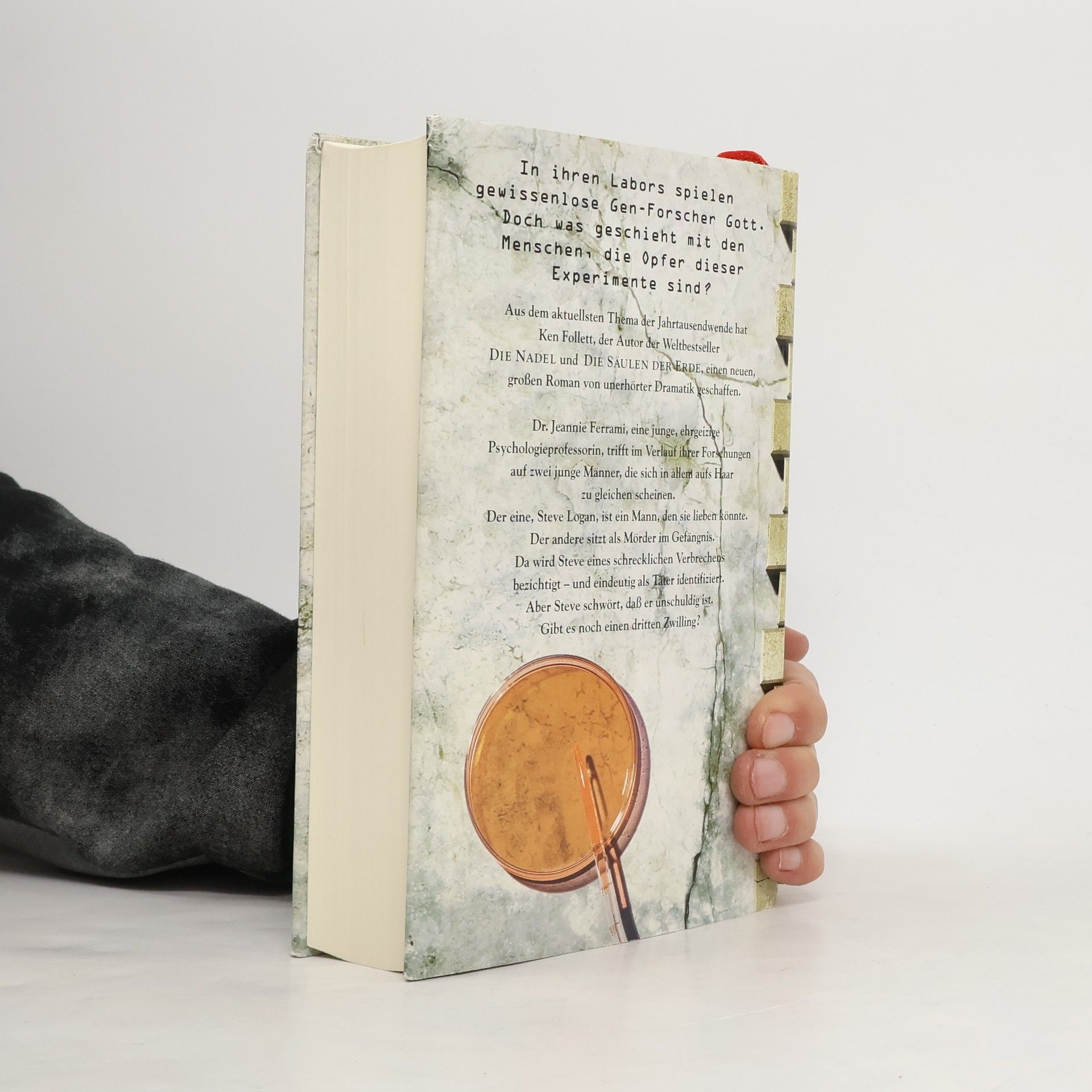 Stellen Sie sich vor, es gibt einen Menschen, der Ihnen aufs Haar gleicht, bis in die kleinste Zelle ... Jeannie Ferrami, eine brillante, ehrgeizige Wissenschaftlerin, die sich mit der Entstehung kriminellen Verhaltens befaßt, entdeckt ein solches Paar genetischer Zwillinge. Der eine, Steve Logan, studiert Jura. Der andere sitzt als Mörder im Gefängnis. Da wird Steve eines schrecklichen Verbrechens bezichtigt - und eindeutig als Täter identifiziert. Aber Steve ist unschuldig. Gibt es noch einen dritten Zwilling? Wie in seinen historischen Meisterwerken zeigt Ken Follett auch seinem neuen Roman das dramatische Schicksal von Menschen in ihrer Zeit - diesmal mit einem brandaktuellen Thema von heute.