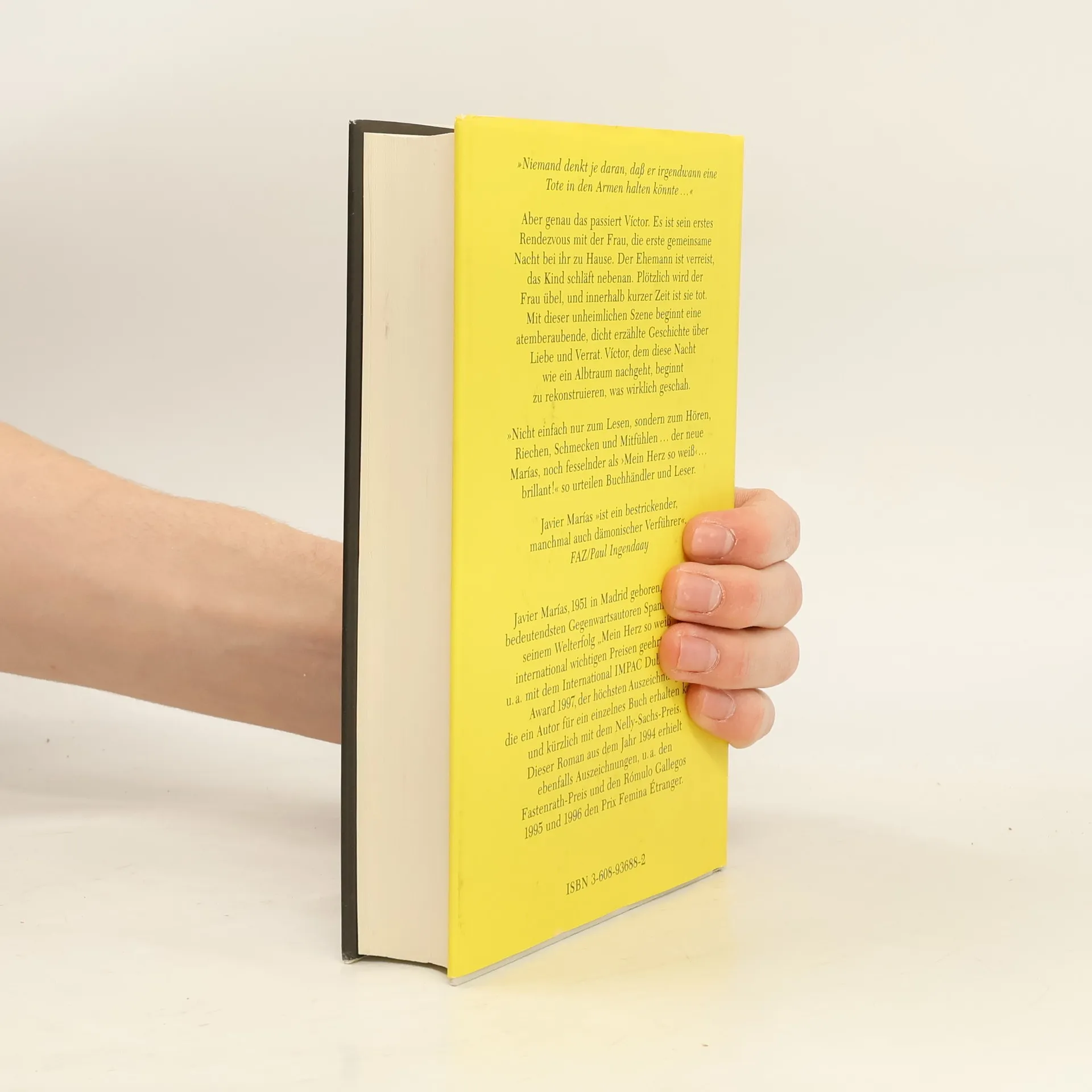 „Niemand denkt je daran, daß er irgendwann eine Tote in den Armen halten könnte“, aber genau das passiert Víctor. Es ist sein erstes Rendezvous mit der Frau, die erste gemeinsame Nacht bei ihr zu Hause. Der Ehemann ist verreist, das Kind schläft nebenan. Plötzlich wird der Frau übel, und innerhalb kurzer Zeit ist sie tot. Mit dieser unheimlichen Szene beginnt eine atemberaubende, dicht erzählte Geschichte über Liebe und Verrat. Víctor, dem diese Nacht wie ein Albtraum nachgeht, beginnt zu rekonstruieren, was wirklich geschah.