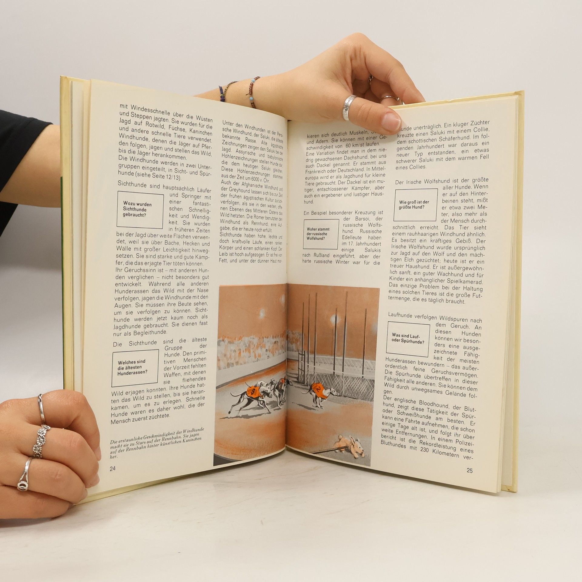 Ob als Blindenführhunde, Helfer im Polizei- und Rettungseinsatz, Jagd- und Hütehunde oder Spielkameraden im Kreis einer Familie - Hunde sind mit uns Menschen eine enge Partnerschaft eingegangen. Sie unterscheiden sich sehr in Größe, Form und Temperament - doch die Zuneigung zu „ihren Menschen“ ist einzigartig und verbindet alle Haushunde. Tierarzt Dr. Peter Teichmann stellt viele der wichtigsten Rassen vor, von kleinen Schoßhunden über schnelle Windhunde und vielseitig einsetzbare Schäferhunde bis hin zu den mächtigen Doggen. Spannend erzählt er aus der Geschichte der Vierbeiner und macht junge Leser mit den Charaktereigenschaften der einzelnen Rassen bekannt. Der Autor berichtet über die wilden Vorfahren, erklärt die Körpersprache des Hundes und gibt Tipps, wie man den treuen Gefährten pflegt und sein lebenslanges Vertrauen gewinnen kann.