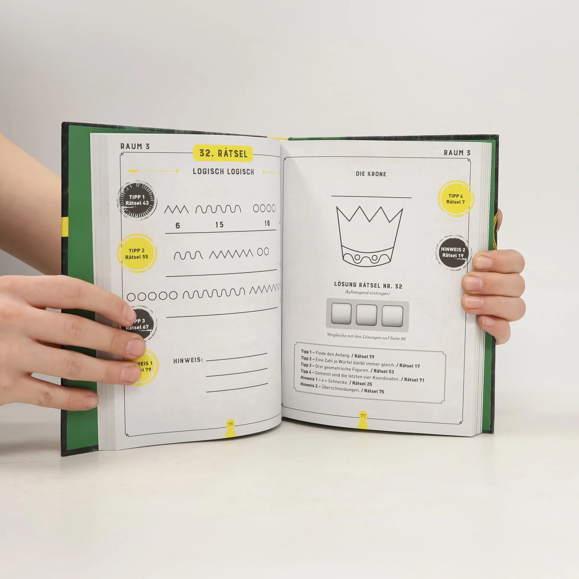 Die perfekte Vorbereitung für alle Escape Rooms ★ Mehr als 80 zweiteilige Rätsel in sieben Räumen ★ Zahlreiche Tipps und Hinweise, verteilt im ganzen Buch ★ Nur wer alle Rätsel löst, knackt den Code, um am Schluss zu entkommen ★ Mit ausführlichem Lösungsteil im Anhang Eingeschlossen in einem Raum mit nichts als jeder Menge Rätsel: Escape Rooms sind die ultimative Live-Experience für alle Krimi- und Rätselfans. Mit diesem Buch bereiten Sie sich bestens auf dieses außergewöhnliche Abenteuer vor. Hier lernen Sie Techniken, die Ihnen im Escape Room helfen werden. Mehr als 80 Zahlencode-, Buchstaben- und andere Logikrätsel gilt es zu knacken, und aus sieben Räumen gilt es zu entkommen. Jedes Rätsel besteht aus zwei Teilen. Und nur die Lösung des ersten Teils liefert den wichtigen Hinweis für den zweiten Teil. Um auch die kniffligsten Herausforderungen zu lösen, sind im Buch zahlreiche Tipps und Hinweise verteilt. Ob allein oder in der Gruppe: Nur wer um die Ecke denken kann, knackt ein Schloss nach dem anderen. Und nur wer sich auf immer neue Rätsel einlässt, findet am Schluss den endgültigen Code, um die letzte Tür zu öffnen. Sind Sie bereit für das Abenteuer?