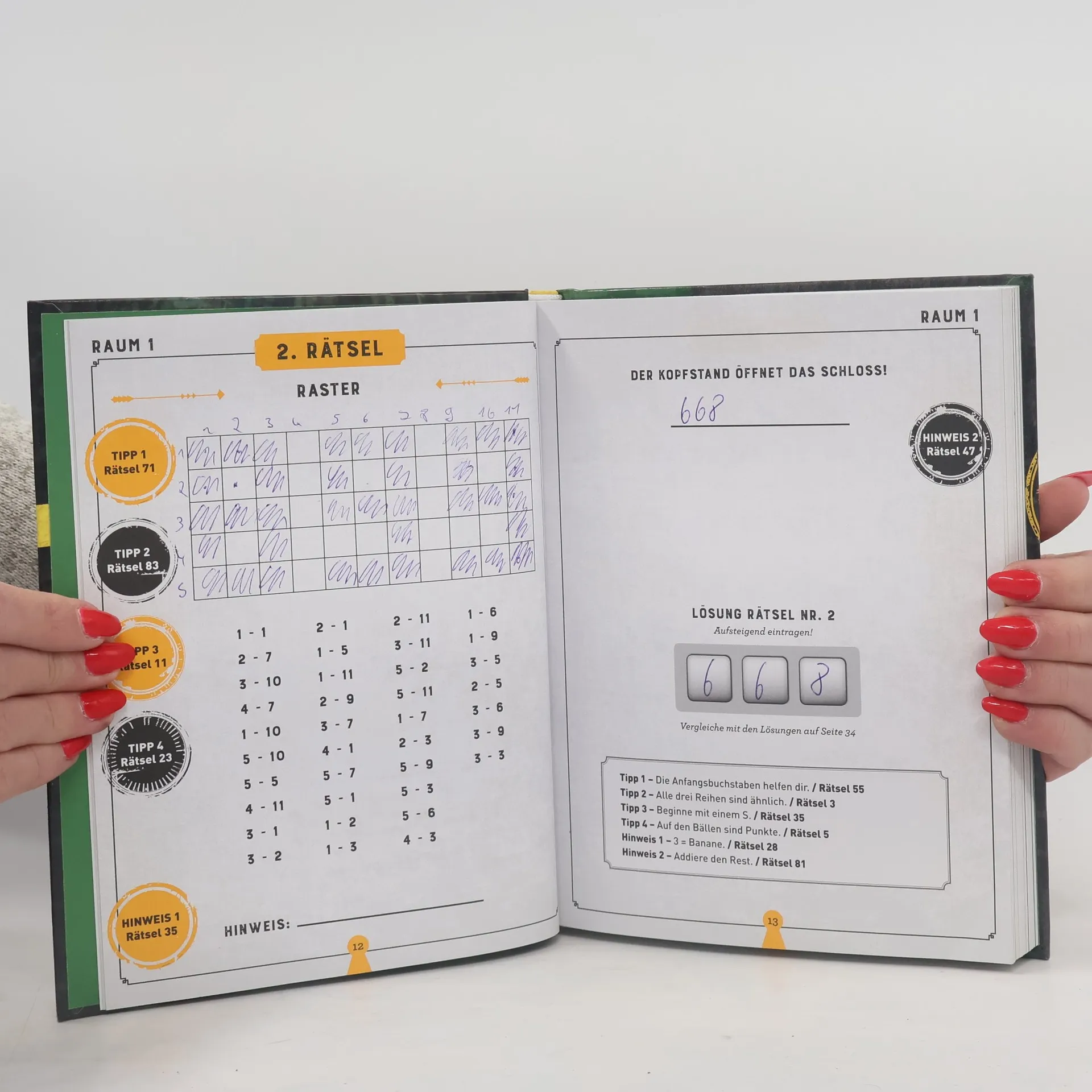 Die perfekte Vorbereitung für alle Escape Rooms ★ Mehr als 80 zweiteilige Rätsel in sieben Räumen ★ Zahlreiche Tipps und Hinweise, verteilt im ganzen Buch ★ Nur wer alle Rätsel löst, knackt den Code, um am Schluss zu entkommen ★ Mit ausführlichem Lösungsteil im Anhang Eingeschlossen in einem Raum mit nichts als jeder Menge Rätsel: Escape Rooms sind die ultimative Live-Experience für alle Krimi- und Rätselfans. Mit diesem Buch bereiten Sie sich bestens auf dieses außergewöhnliche Abenteuer vor. Hier lernen Sie Techniken, die Ihnen im Escape Room helfen werden. Mehr als 80 Zahlencode-, Buchstaben- und andere Logikrätsel gilt es zu knacken, und aus sieben Räumen gilt es zu entkommen. Jedes Rätsel besteht aus zwei Teilen. Und nur die Lösung des ersten Teils liefert den wichtigen Hinweis für den zweiten Teil. Um auch die kniffligsten Herausforderungen zu lösen, sind im Buch zahlreiche Tipps und Hinweise verteilt. Ob allein oder in der Gruppe: Nur wer um die Ecke denken kann, knackt ein Schloss nach dem anderen. Und nur wer sich auf immer neue Rätsel einlässt, findet am Schluss den endgültigen Code, um die letzte Tür zu öffnen. Sind Sie bereit für das Abenteuer?