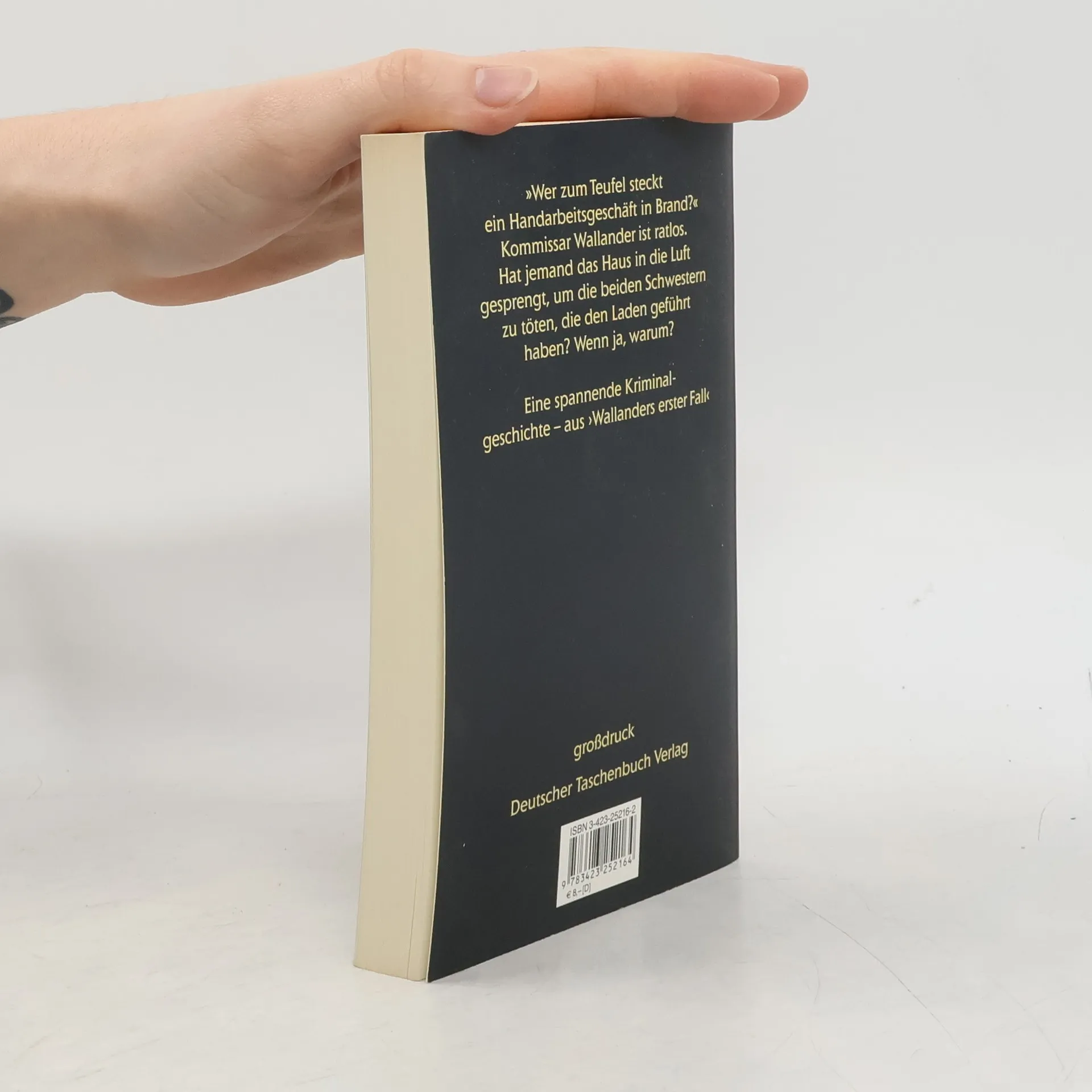 Vier verbrannte Leichen in Ystad. Mord? Wallander ermittelt ... Der Roman aus ›Wallanders erster Fall‹ – in großer Schrift. In der Nähe von Ystad stürzt ein Sportflugzeug ab, aus dem brennenden Wrack werden zwei verkohlte Körper geborgen. Achtundvierzig Stunden später wird ein Handarbeitsgeschäft in die Luft gesprengt, und zwei alte Damen liegen fast bis zur Unkenntlichkeit verbrannt in den Trümmern. Mord? Die beiden Schwestern weisen Einschußstellen am Kopf auf. Ein Fall für Kurt Wallander. Doch noch bevor er die Ermittlungen richtig aufnehmen kann, muß er seinen eigenen Vater aus dem Gefängnis holen, weil der versucht hat, in Ägypten auf eine Pyramide zu steigen. Es bleibt Wallander nichts anderes übrig, als selbst nach Kairo zu reisen, nicht ahnend, daß ihn die Rettung des Vaters auf eine entscheidende Spur im aktuellen Fall führen wird …