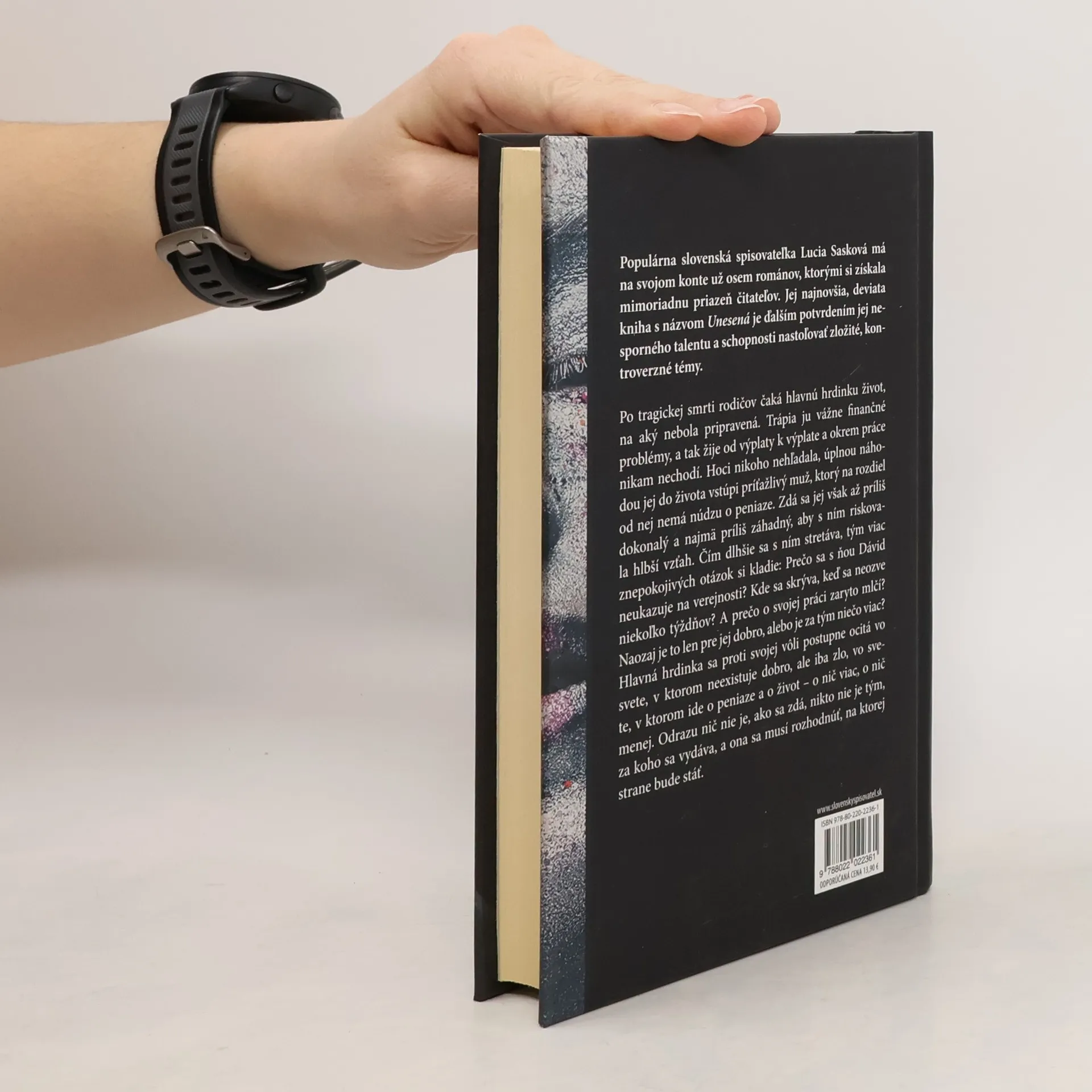Populárna slovenská spisovateľka Lucia Sasková má na svojom konte už osem románov, ktorými si získala mimoriadnu priazeň čitateľov. Jej najnovšia, deviata kniha s názvom Unesená je ďalším potvrdením jej nesporného talentu a schopnosti nastoľovať zložité, kontroverzné témy. Po tragickej smrti rodičov čaká hlavnú hrdinku život, na aký nebola pripravená. Trápia ju vážne finančné problémy, a tak žije od výplaty k výplate a okrem práce nikam nechodí. Hoci nikoho nehľadala, úplnou náhodou jej do života vstúpi príťažlivý muž, ktorý na rozdiel od nej nemá núdzu o peniaze. Zdá sa jej však až príliš dokonalý a najmä príliš záhadný, aby s ním riskovala hlbší vzťah. Čím dlhšie sa s ním stretáva, tým viac znepokojivých otázok si kladie: Prečo sa s ňou Dávid neukazuje na verejnosti? Kde sa skrýva, keď sa neozýva niekoľko týždňov? A prečo o svojej práci zaryto mlčí? Naozaj je to len pre jej dobro, alebo je z tým niečo viac? Hlavná hrdinka sa proti svojej vôli postupne ocitá vo svete, v ktorom ide o peniaze a o život – o nič viac, o nič menej. Odrazu nič nie je, ako sa zdá, nikto nie je tým, za koho sa vydáva, a ona sa musí rozhodnúť, na ktorej strane bude stáť.