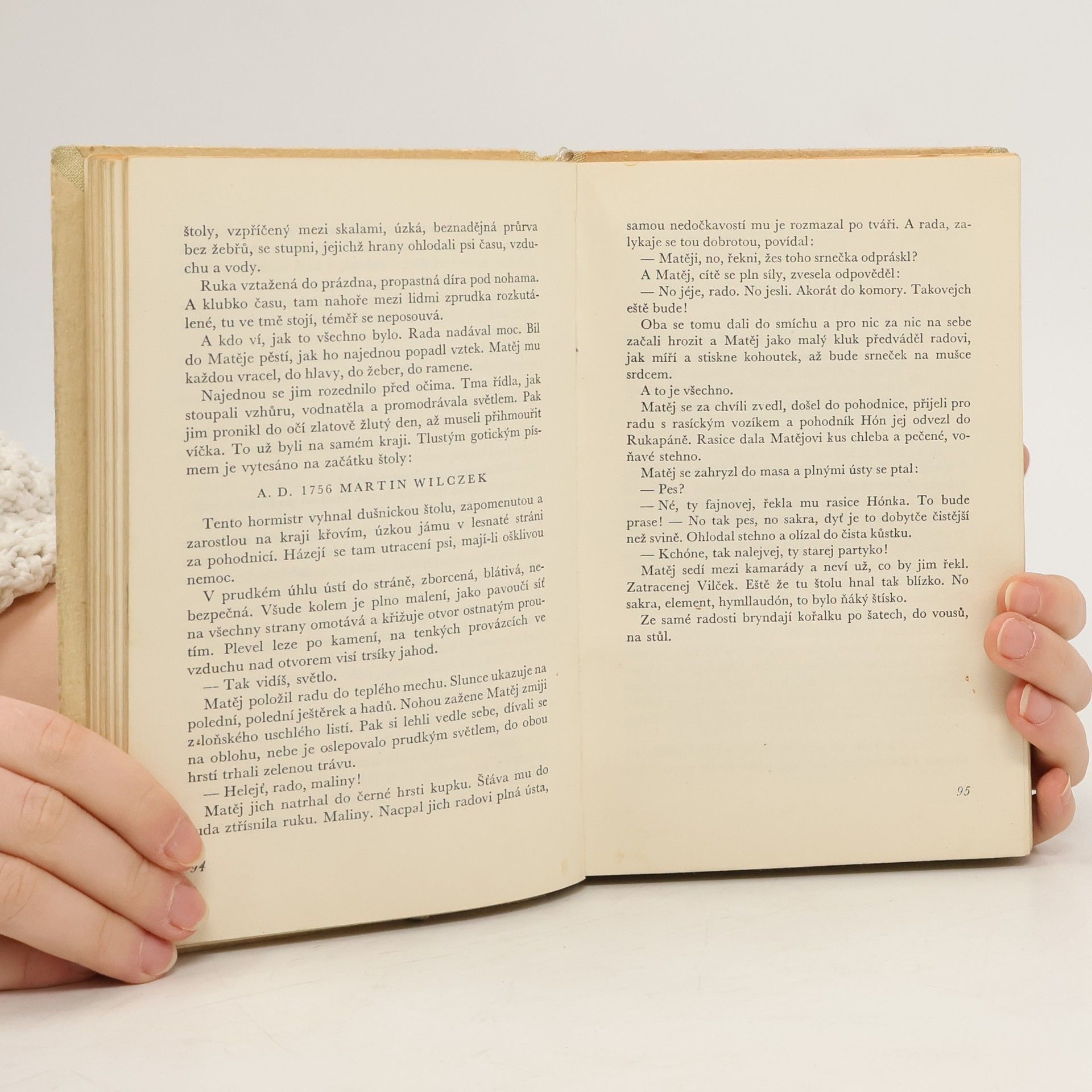 Rukapáň (autorova rodná Příbram) tj. "městečko na dlani", rozvíjí se před čtenářem v krátkých záběrech ze života rukapáňských občanů, starosty Buzka, městských radních, starých selských rodů, havířské čtvrti, vorařů, až po obecního blázna Pudese. Jasná, téměř legendová nit vyprávění se střídá se smutnou - výbuch na dole Anna Marie, smrt starosty, tragický konec bláznův a j., - avšak humorně opět nasazuje v episodách o Matěji Řezáčovi, havíři, pytláku a nevídaném střelci, a jasně vyznívá v idylce lásky dvou věrných milenců, Václava Tratince a chudé dřevařské dcerky Ančky Karasové. - Jako těžký úder přeruší klidný život Rukapáně a zakončuje děj knihy prohlášení války r. 1914 s prvními odvody.