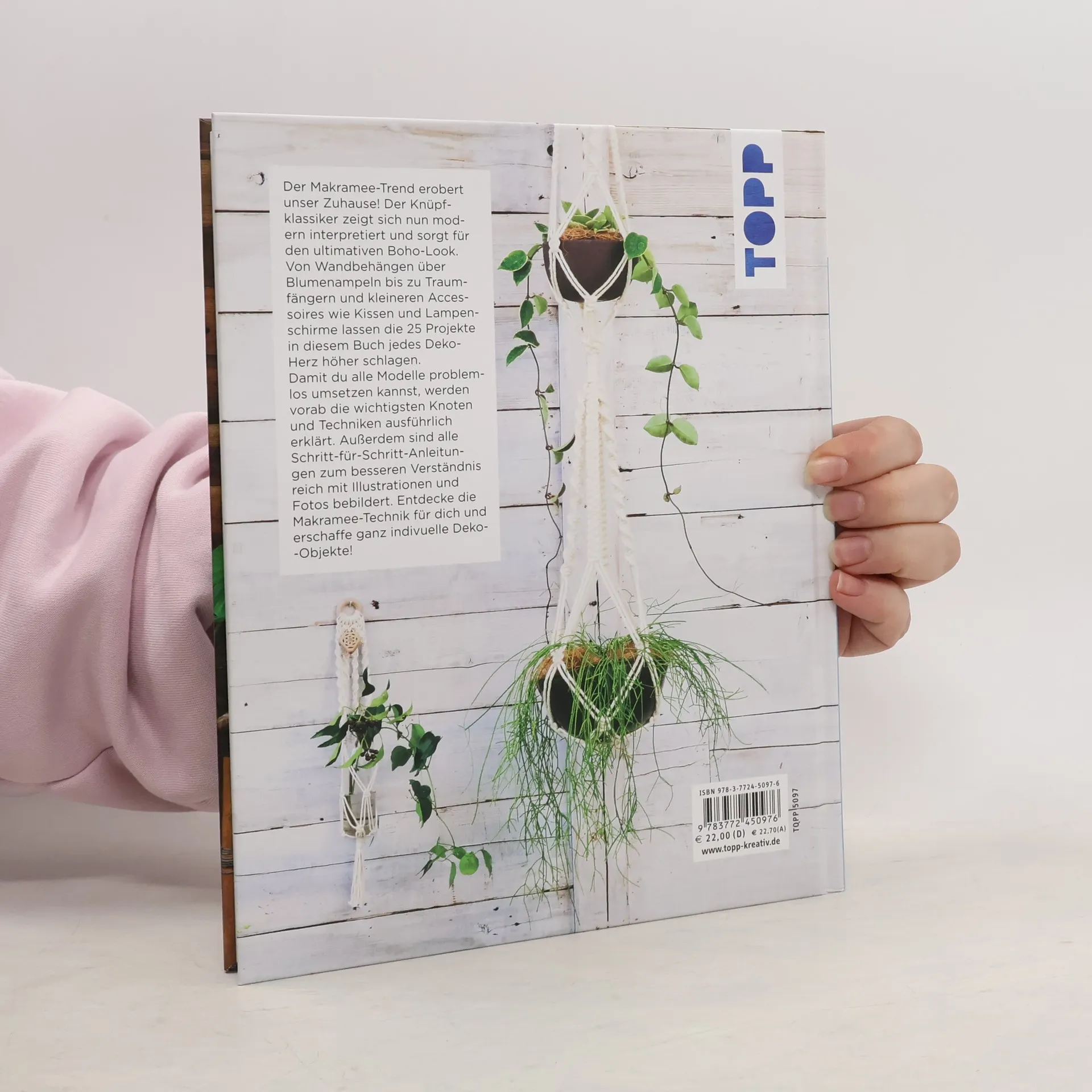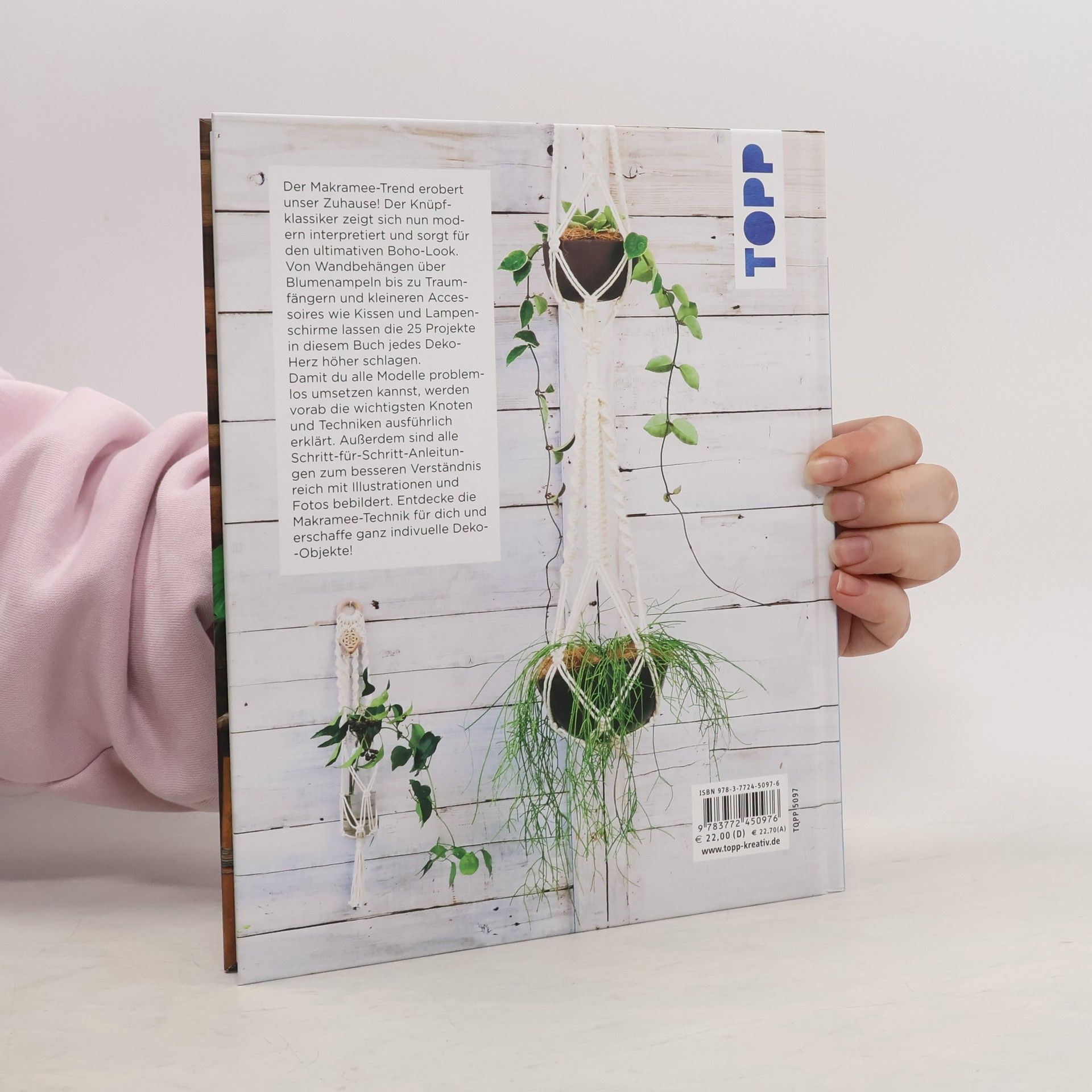 Der Makramee-Trend erobert unser Zuhause! Der Knüpfklassiker zeigt sich nun modern interpretiert und sorgt für den ultimativen Boho-Look. Von Wandbehängen über Blumenampeln bis zu Traumfängern und kleineren Accessoires wie Kissen und Lampenschirme lassen die 25 Projekte in diesem Buch jedes Deko-Herz höher schlagen. Damit du alle Modelle problemlos umsetzen kannst, werden vorab die wichtigsten Knoten und Techniken ausführlich erklärt. Außerdem sind alle Schritt-für-Schritt-Anleitungen zum noch besseren Verständnis reich mit Illustrationen und Fotos bebildert. Entdecke die Makramee-Technik für dich und erschaffe ganz indivuelle Dekoobjekte!