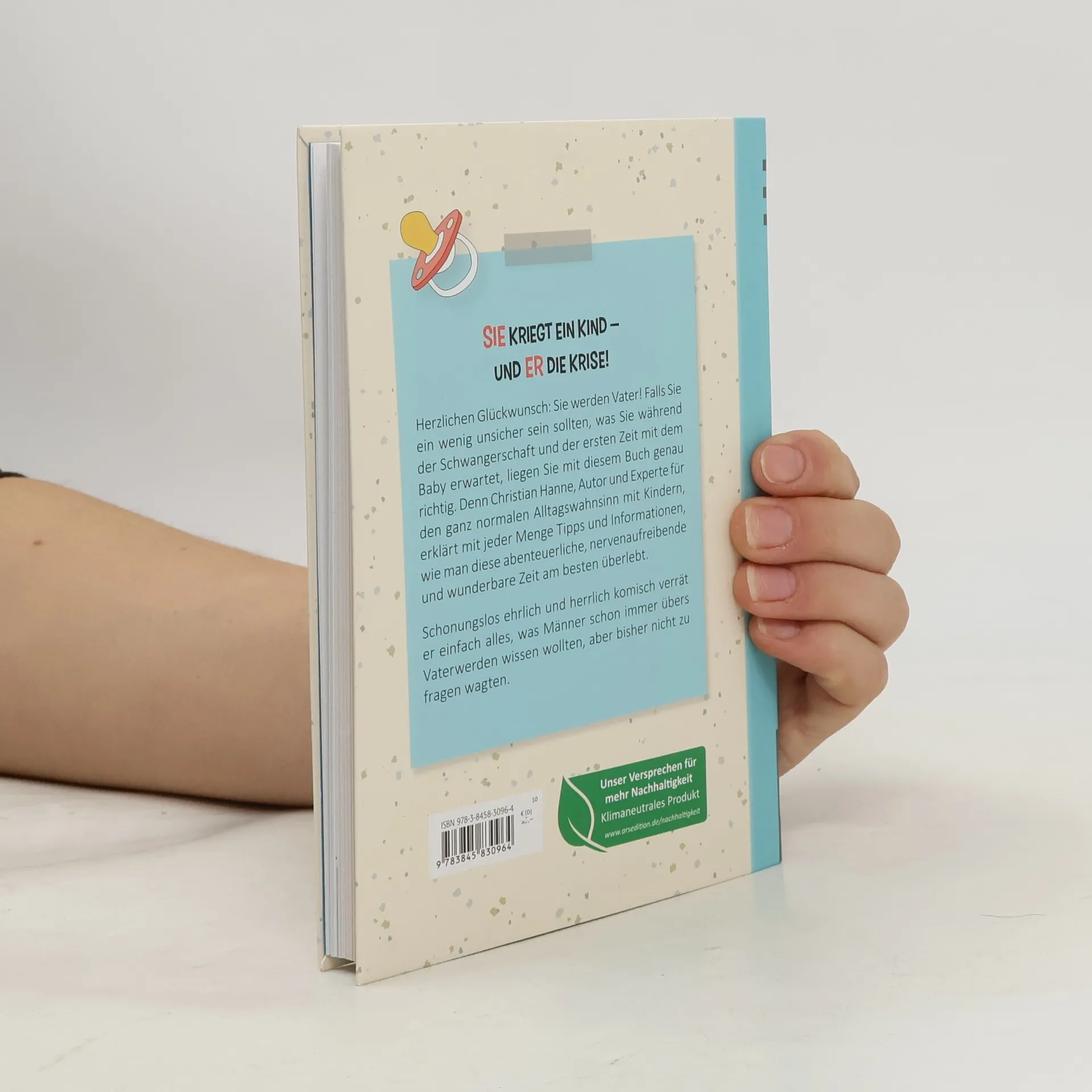 Sie kriegt ein Kind – und er die Krise! Herzlichen Glückwunsch: Sie werden Vater! Falls Sie ein wenig unsicher sein sollten, was Sie während der Schwangerschaft und der ersten Zeit mit dem Baby erwartet, liegen Sie mit diesem Buch genau richtig. Denn Christian Hanne, Autor und Experte für den ganz normalen Alltagswahnsinn mit Kindern, erklärt mit jeder Menge Tipps und Informationen, wie man diese abenteuerliche, nervenaufreibende und wunderbare Zeit am besten überlebt. Schonungslos ehrlich und herrlich komisch verrät er einfach alles, was Männer schon immer übers Vaterwerden wissen wollten, aber bisher nicht zu fragen wagten. Schwangerschaftsbuch für Männer: Alles, was Papa vor der Geburt wissen muss Ideales Geschenk für werdende Väter: hilfreiche Infos lustig verpackt Survival-Tipps vom Papa-Profi: Christian Hanne betreibt den erfolgreichen Blog „Familienbetrieb“ und schreibt Bücher über das Vatersein Tolles Design: mit schönen Illustrationen von Stefanie Wawer Über das Buch: Ein ehrliches, humorvolles und hilfreiches Schwangerschaftsbuch für Väter – die perfekte Lektüre für alle, die Papa werden!