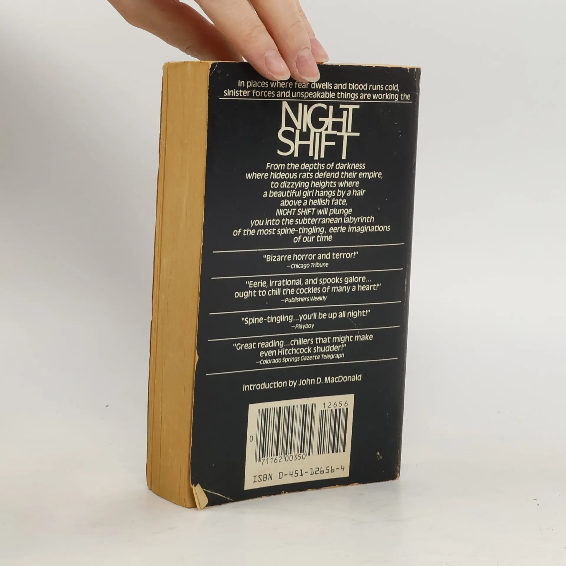 In places where fear dwells and blood runs cold, sinister forces and unspeakable things are running the NIGHT SHIFT. From the depths of darkness, where hideous rats defend their empire, to dizzying heights where a beautiful girl hangs by a hair above a hellish fate, this chilling collection of twenty short stories will plunge readers into the subterranean labyrinth of the most spine-tingling, eerie imagination of our time. --back cover