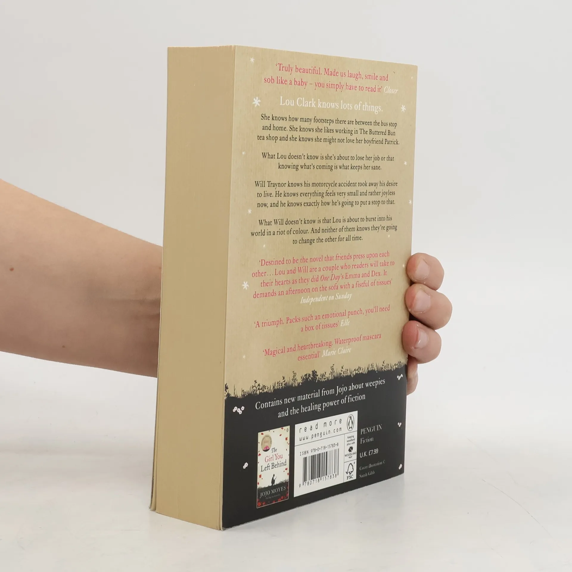 Lou Clark knows lots of things. She knows how many footsteps there are between the bus stop and home. She knows she likes working in The Buttered Bun tea shop and she knows she might not love her boyfriend Patrick. What Lou doesn't know is she's about to lose her job or that knowing what's coming is what keeps her sane. Will Traynor knows his motorcycle accident took away his desire to live. He knows everything feels very small and rather joyless now and he knows exactly how he's going to put a stop to that. What Will doesn't know is that Lou is about to burst into his world in a riot of colour. And neither of them knows they're going to change the other for all time.