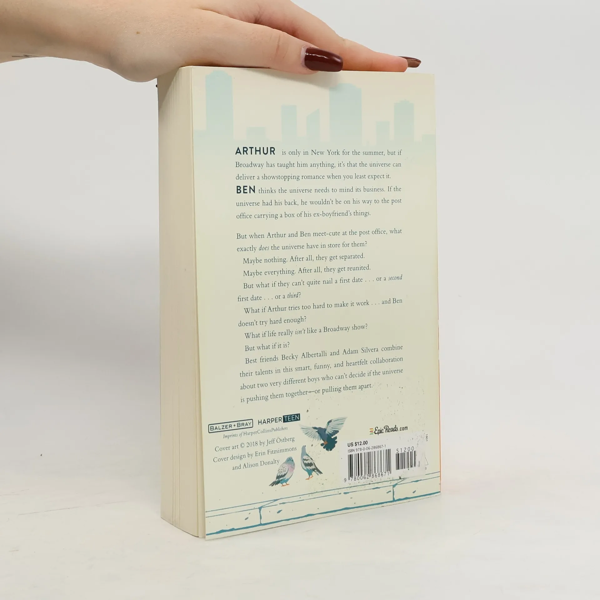 Critically acclaimed and bestselling authors Becky Albertalli and Adam Silvera combine their talents in this smart, funny, heartfelt collaboration about two very different boys who can’t decide if the universe is pushing them together—or pulling them apart. ARTHUR is only in New York for the summer, but if Broadway has taught him anything, it’s that the universe can deliver a showstopping romance when you least expect it. BEN thinks the universe needs to mind its business. If the universe had his back, he wouldn’t be on his way to the post office carrying a box of his ex-boyfriend’s things. But when Arthur and Ben meet-cute at the post office, what exactly does the universe have in store for them . . . ? Maybe nothing. After all, they get separated. Maybe everything. After all, they get reunited. But what if they can’t nail a first date even after three do-overs? What if Arthur tries too hard to make it work and Ben doesn’t try hard enough? What if life really isn’t like a Broadway play? But what if it is? What if it’s us?