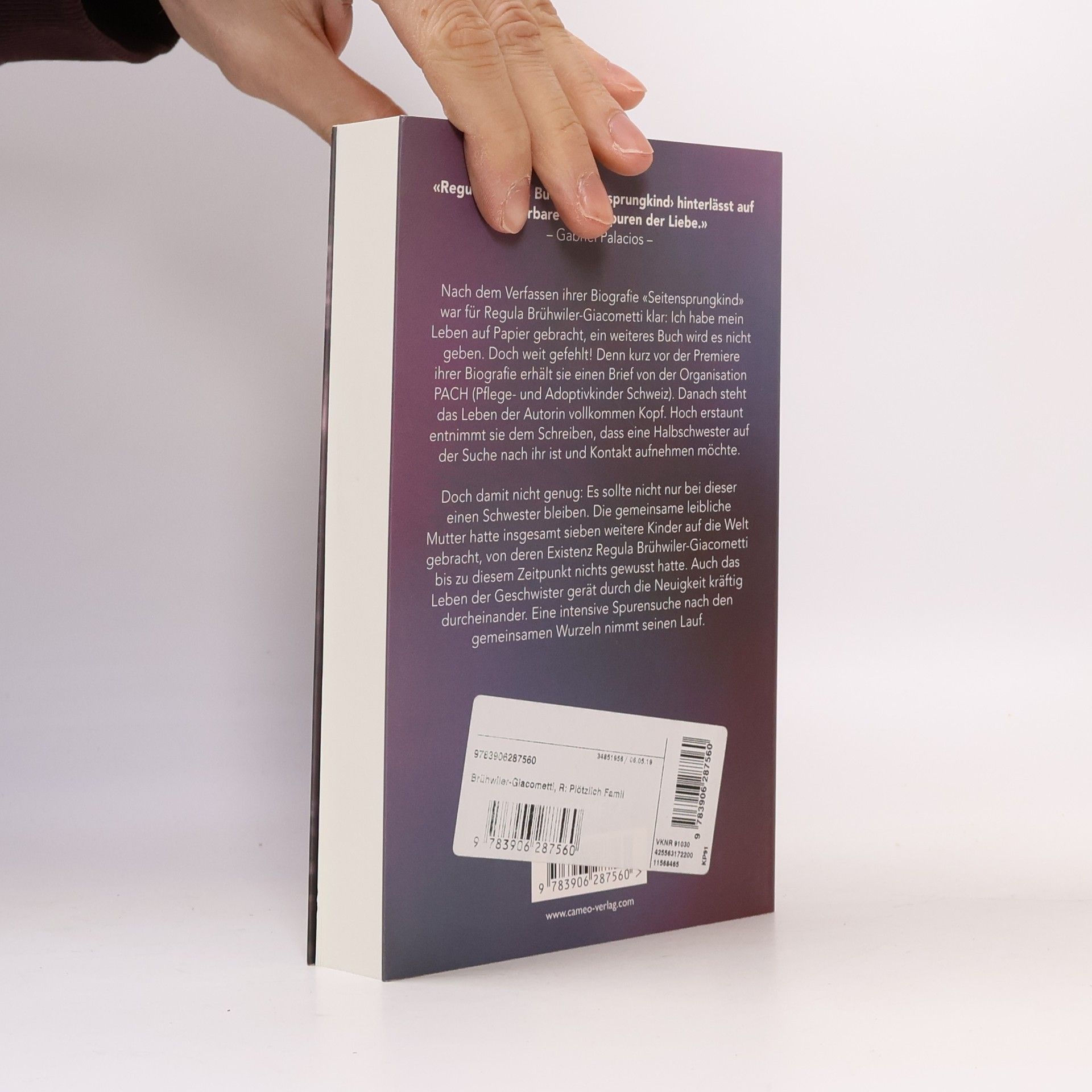 «Seitensprungkind» hatte für die Mutter eines erwachsenen Sohnes eine emotionale Familienzusammenführung zur Folge. Sieben Geschwister meldeten sich bei Regula Brühwiler-Giacometti, alle haben die gleiche Mutter und alle wurden sie weggegeben. In ihrem Folgebuch «Plötzlich Familie» beschreibt die feinfühlige Autorin die intensiven Gefühle, als sie ihre neuen Geschwister erstmals in den Arm schliessen konnte. Sie nimmt ihre Leser mit auf eine spannende Reise in unterschiedliche Biografien. Jede ihrer Halbschwestern und jeder ihrer Halbbrüder hat eine einzigartige Geschichte zu erzählen. Und alle diese Erzählungen finden letztendlich im neuen Buch «Plötzlich Familie» zusammen.
