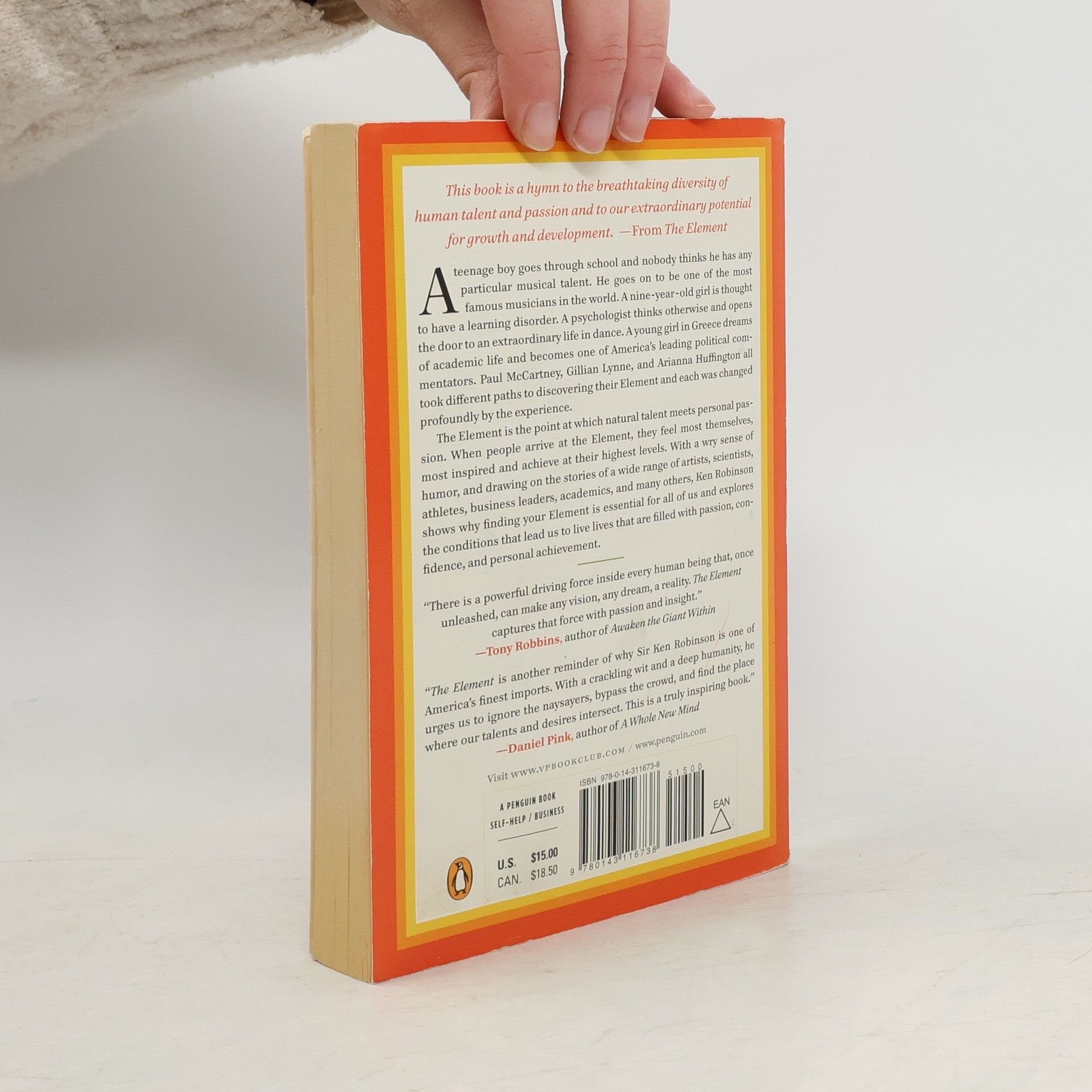 A New York Times-bestselling breakthrough book about talent, passion, and achievement from the one of the world's leading thinkers on creativity and self-fulfillment. The Element is the point at which natural talent meets personal passion. When people arrive at the Element, they feel most themselves and most inspired and achieve at their highest levels. With a wry sense of humor, Ken Robinson looks at the conditions that enable us to find ourselves in the Element and those that stifle that possibility. Drawing on the stories of a wide range of people, including Paul McCartney, Matt Groening, Richard Branson, Arianna Huffington, and Bart Conner, he shows that age and occupation are no barrier and that this is the essential strategy for transform­ing education, business, and communities in the twenty-first century. Also available from Ken Robinson is Imagine If, a call to action that challenges and empowers us to reimagine our world and our systems for the better, through a compilation of Sir Ken's key messages and philosophies.
