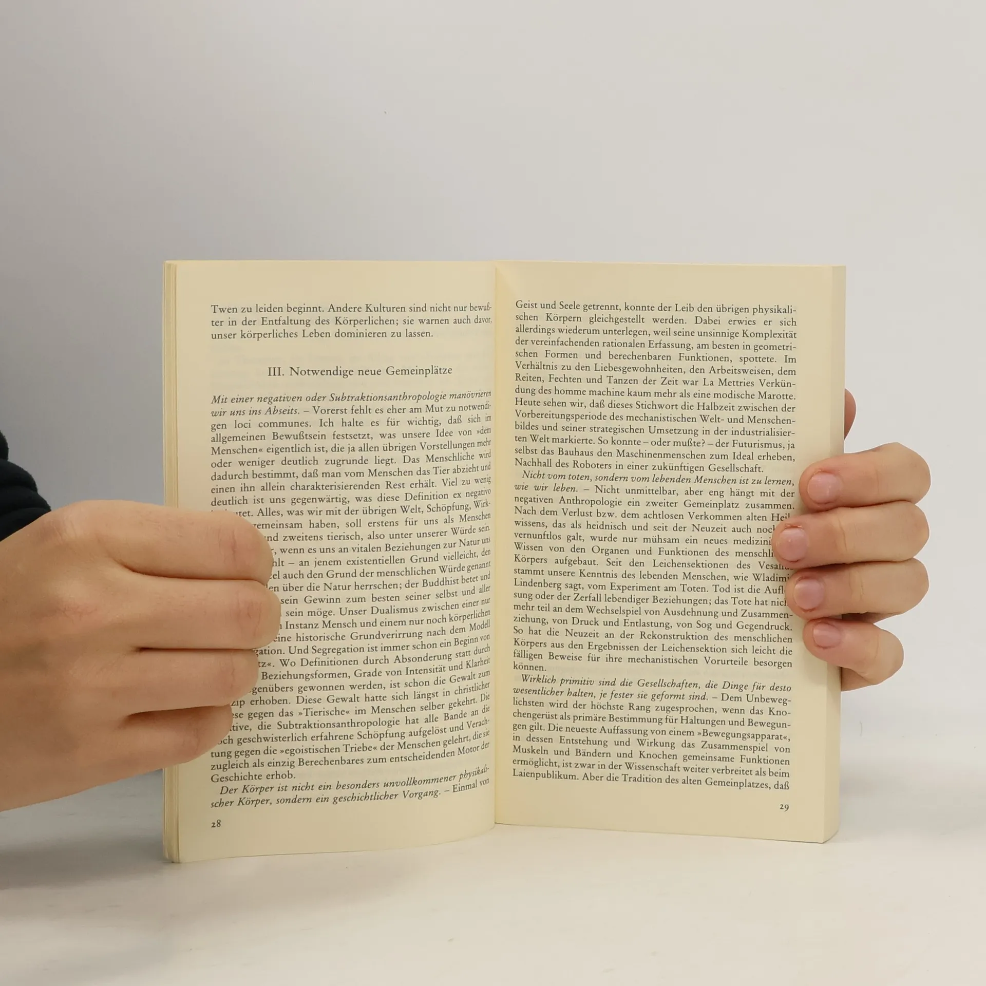 Versuch, das "wahre" Subjekt im Körper wieder zu entdecken. Der Körper wird unter Bezugnahme auf Krankheit, Therapie, Technik, Geschlechterverhältnisse und Kunst thematisiert.