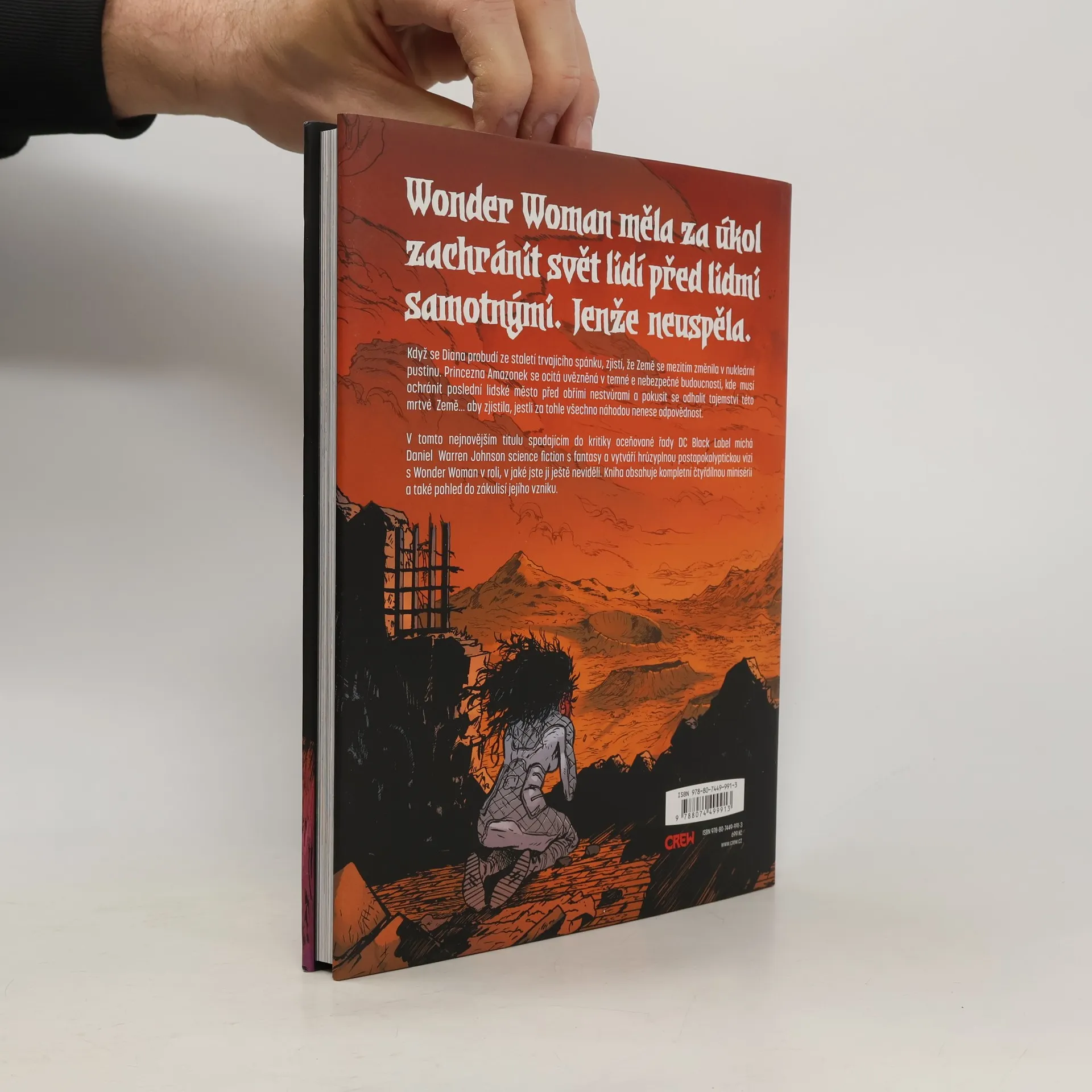 Wonder Woman měla za úkol zachránit svět lidí před lidmi samotnými. Jenže neuspěla. Když se Diana probudí ze staletí trvajícího spánku, zjistí, že Země se mezitím změnila v nukleární pustinu. Princezna Amazonek se ocitá uvězněná v temné e nebezpečné budoucnosti, kde musí ochránit poslední lidské město před obřími nestvůrami a pokusit se odhalit tajemství této mrtvé Země... aby zjistila, jestli za tohle všechno náhodou nenese odpovědnost. V tomto nejnovějším titulu spadajícím do kritiky oceňované řady DC Black Label míchá Daniel Warren Johnson science fiction s fantasy a vytváří hrůzyplnou postapokalyptickou vizi s Wonder Woman v roli, v jaké jste ji ještě neviděli. Kniha obsahuje kompletní čtyřdílnou minisérii a také pohled do zákulisí jejího vzniku.