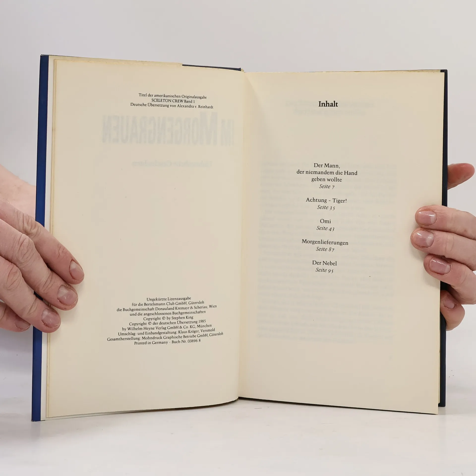 * Der Mann, der niemandem die Hand geben wollte* Achtung – Tiger!* Omi* Morgenlieferungen * Der NebelTeil zwei von drei der deutschsprachigen Ausgabe von "Skeleton Crew"