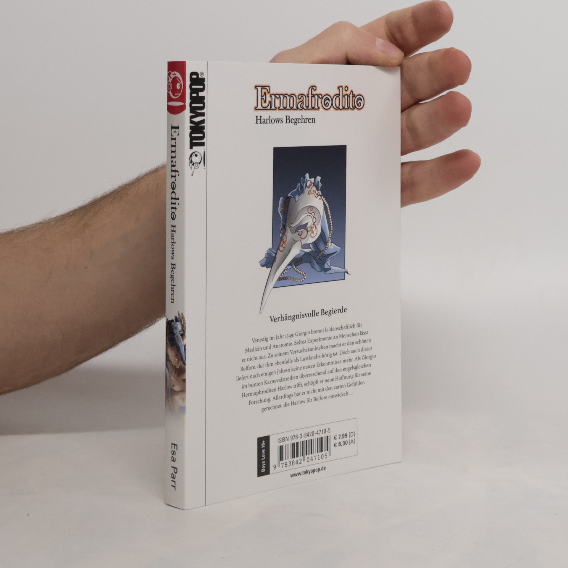 Venedig im Jahr 1549. Giorgios Leidenschaft für Medizin und Anatomie macht auch vor Experimenten mit Menschen keinen Halt. Den schönen Belfore, der immun gegen Krankheiten zu sein scheint, macht er zu seinem Versuchskaninchen und Lustknaben. Doch Belfore liefert Giorgio selbst nach einigen Jahren keine neuen Erkenntnisse. Als ihm im Karnevalstreiben plötzlich der engelsgleiche Hermaphrodit Harlow vor die Füße läuft, schöpft Giorgio neue Hoffnung für seine Forschung. Womit er allerdings nicht gerechnet hat, sind die zarten Gefühle, die der schöne Harlow für Belfore entwickelt. Belfore kann mit dem seltsamen Zwitterwesen allerings nicht viel anfangen, doch er wird seine Meinung bald ändern …