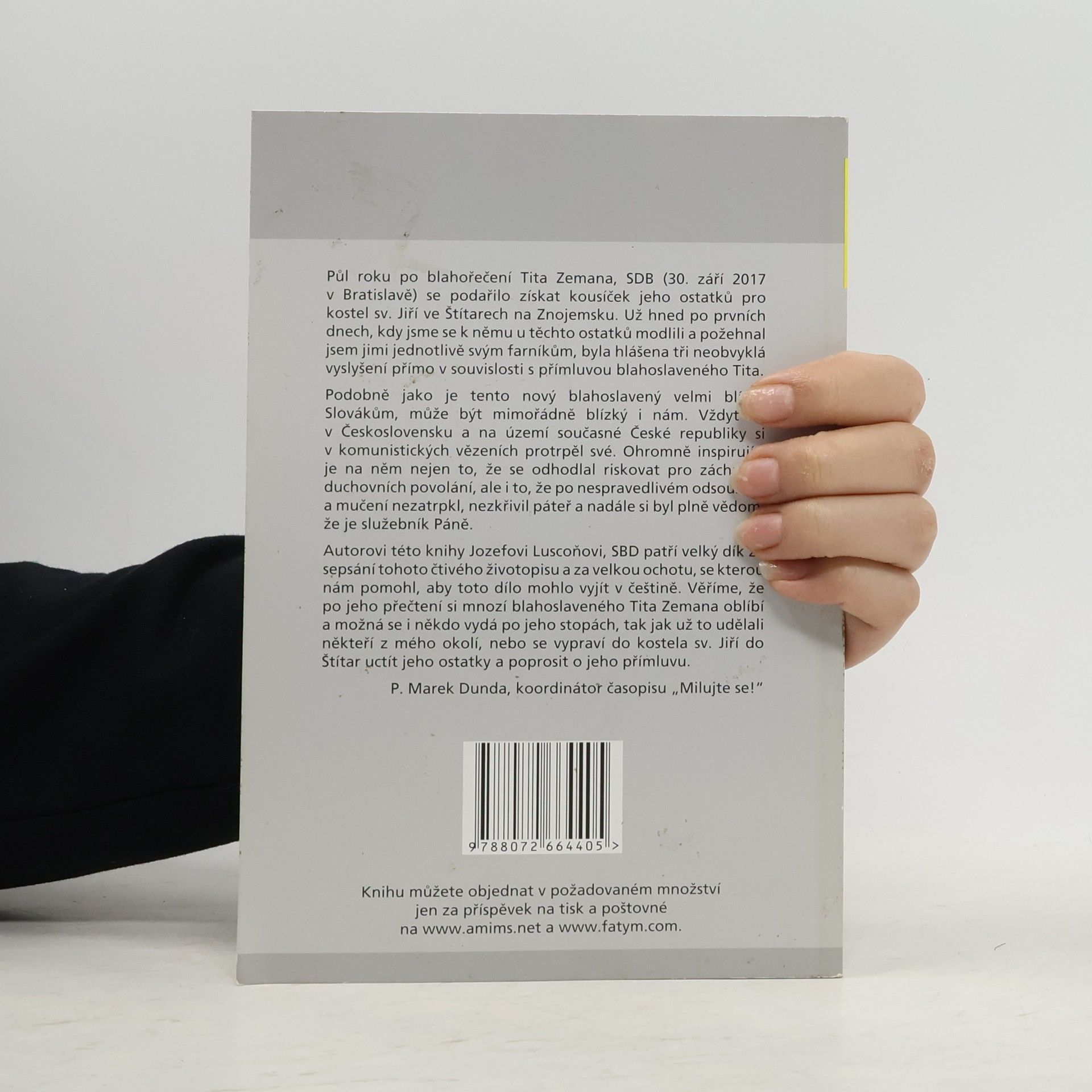 Životopisný román o blahoslaveném Titovi Zemanovi, salesiánovi, který v 50. létech 20. století pomáhal spolubratrům i dalším dostat se za hranice, aby mohli pokračovat ve studiu kněžství. Byl však chycen, nespravedlivě odsouzen, mučen a uvězněn. Avšak nezatrpkl, nezkřivil páteř a nadále si byl plně vědom, že je služebník Páně. Titus byl blahořečen 30. 9. 2017.