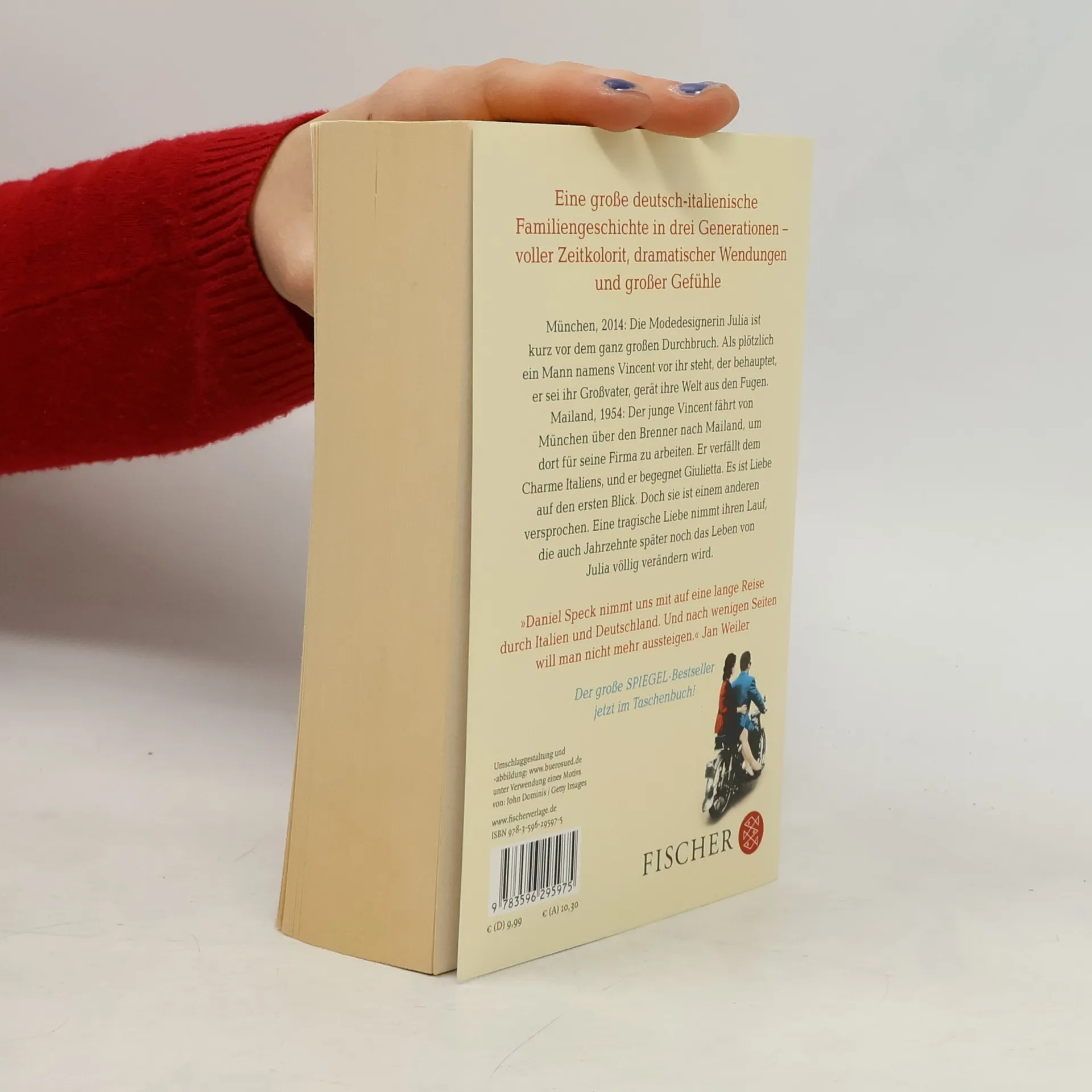 »Eine packende Geschichte – und wunderschön erzählt.« Jan Weiler Daniel Specks Roman »Bella Germania« ist eine große deutsch-italienische Familiengeschichte in drei Generationen – voller Zeitkolorit, dramatischer Wendungen und großer Gefühle. »Er reichte mir ein altes Foto. Ein junges Paar vor dem Mailänder Dom. Die Frau hatte schwarze Haare und sah aus wie ich. Es war, als blickte ich direkt in einen Spiegel. ›Das ist Giulietta‹, sagte er, ›deine Großmutter.‹« München, 2014: Die Modedesignerin Julia ist kurz vor dem ganz großen Durchbruch. Als plötzlich ein Mann namens Vincent vor ihr steht, der behauptet, er sei ihr Großvater, gerät ihre Welt aus den Fugen. Mailand, 1954: Der junge Vincent fährt von München über den Brenner nach Mailand, um dort für seine Firma zu arbeiten. Er verfällt dem Charme Italiens, und er begegnet Giulietta. Es ist Liebe auf den ersten Blick. Doch sie ist einem anderen versprochen. Eine tragische Liebe nimmt ihren Lauf, die auch Jahrzehnte später noch das Leben von Julia völlig verändern wird. »Daniel Speck nimmt uns mit auf eine lange Reise durch Italien und Deutschland. Und nach wenigen Seiten will man nicht mehr aussteigen.« Jan Weiler