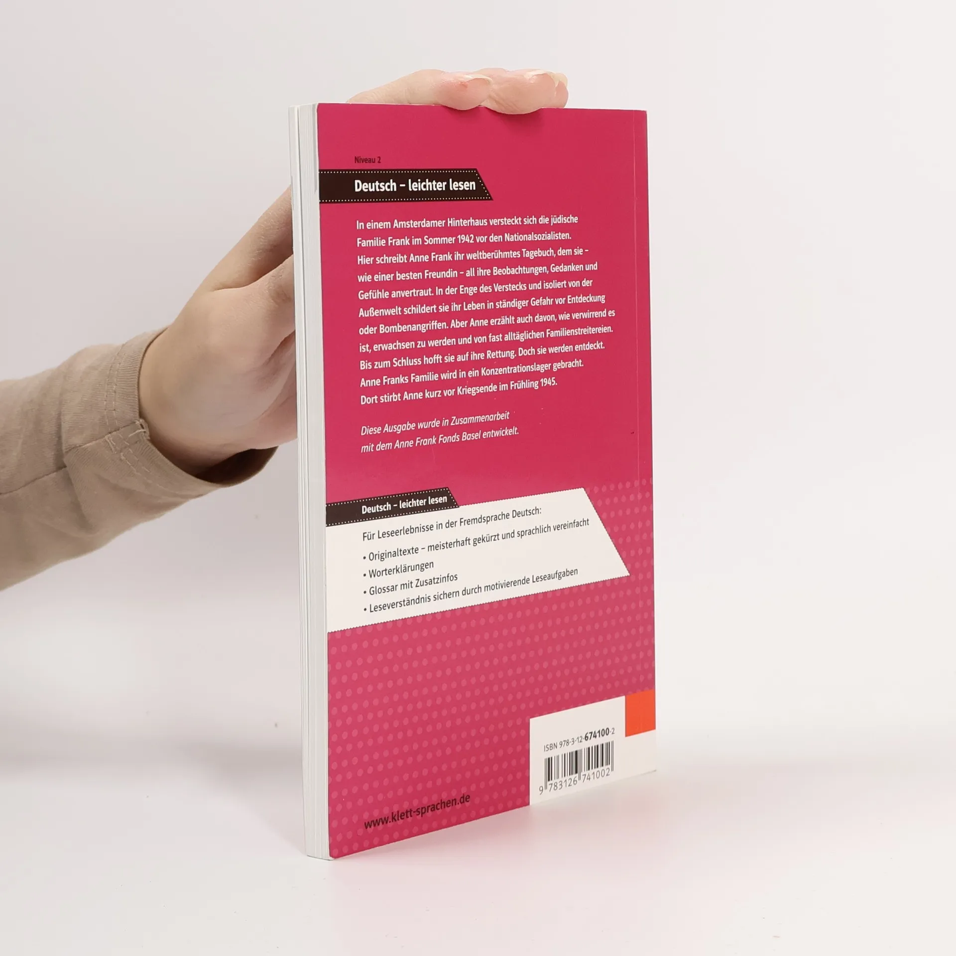 In einem Amsterdamer Hinterhaus versteckt sich die jüdische Familie Frank im Sommer 1942 vor den Nationalsozialisten. Hier schreibt Anne Frank ihr weltberühmtes Tagebuch, dem sie – wie einer besten Freundin – all ihre Beobachtungen, Gedanken und Gefühle anvertraut. In der Enge des Verstecks und isoliert von der Außenwelt schildert sie ihr Leben in ständiger Gefahr vor Entdeckung oder Bombenangriffen. Aber Anne erzählt auch davon, wie verwirrend es ist, erwachsen zu werden und von fast alltäglichen Familienstreitereien. Bis zum Schluss hofft sie auf ihre Rettung. Doch sie werden entdeckt. Anne Franks Familie wird in ein Konzentrationslager gebracht. Dort stirbt Anne kurz vor Kriegsende im Frühling 1945. Diese Ausgabe wurde in Zusammenarbeit und mit Unterstützung des Anne-Frank-Fonds, Basel erarbeitet.