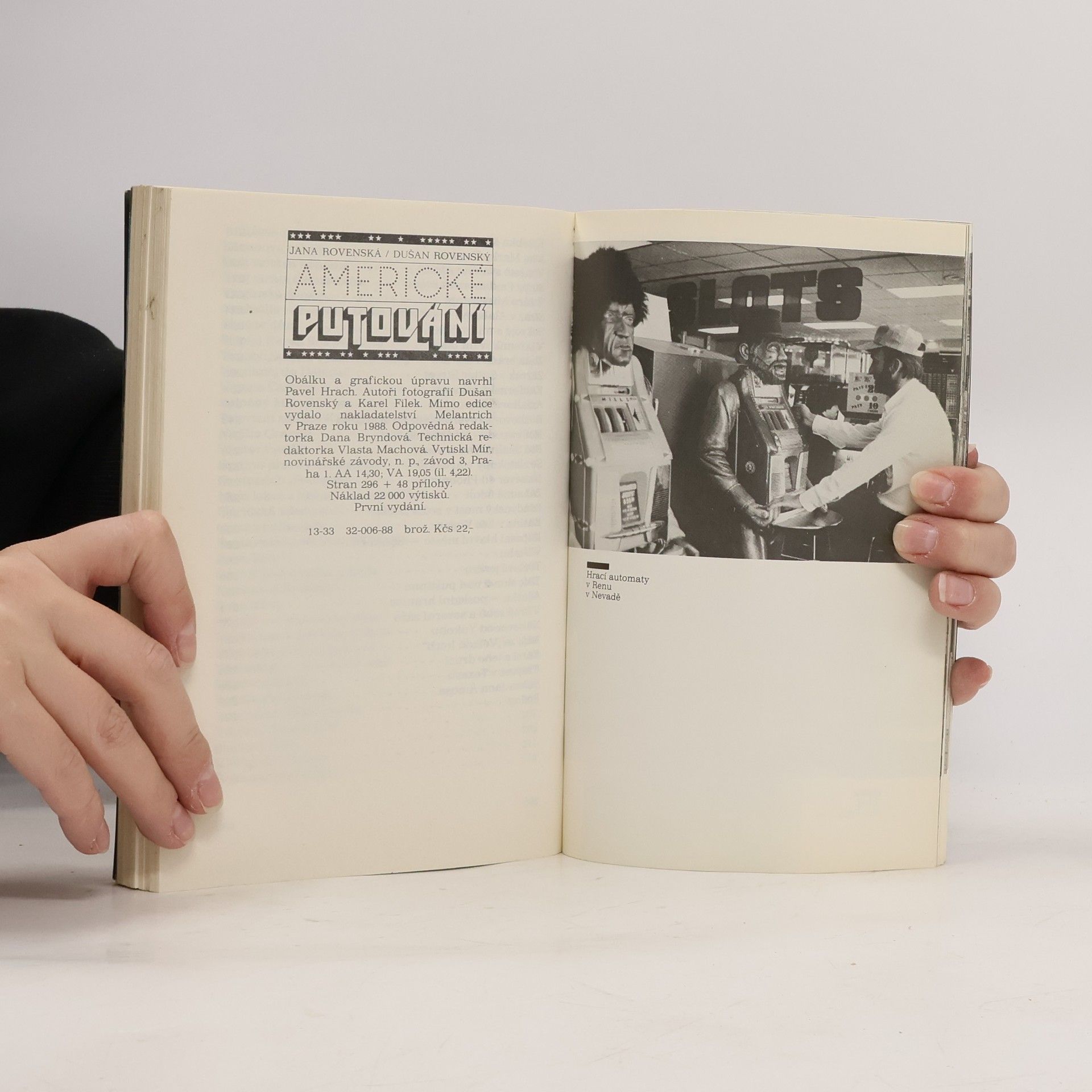 Reportáže manželů Rovenských jsou poutavým a barvitým obrazem dnešních Spojených států, jak je autoři poznali z mnoha nejrůznějších pohledů za svého dlouholetého působení v této zemi. Zmiňme se jen o některých reportážích: Neóny na Broadwayi, Ulice hříchu, Tajemství hřmících vod, Chicago větrné město, Na silnici do Dallasu, Na Riu Grande, Ostrov milionářů, Splněný sen Walta Disneye, Miami — v slunci i ve stínu, Horká noc v policejním autě, Dům ,Papá Hemingway´, Vinnetouova závěť, V kraji Dixielandu, Zlatá brána Pacifiku, Hollywood — továrna na sny, Se zlatokopy v Arizoně, Kasina v Las Vegas, Aljaška — poslední hranice. Dramatické, dobrodružné i pitoreskní zážitky spolu s objektivním pohledem na současné problémy, jakými USA žijí, tvoří z této reportážní knihy neobyčejně poutavou četbu, navíc ilustrovanou několika desítkami černobílých i barevných fotografií.