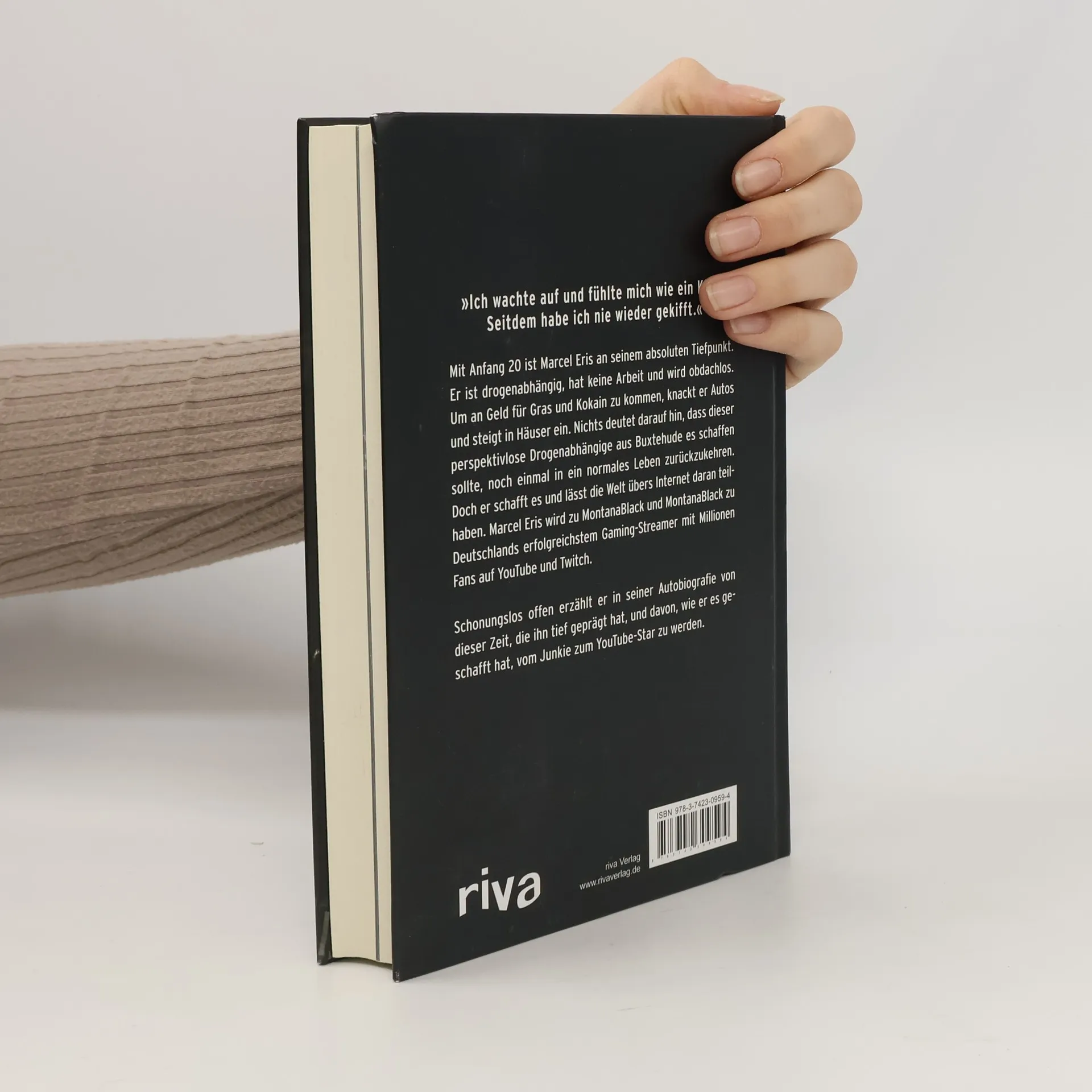 "Ich wachte auf und fühlte mich wie ein King. Seitdem habe ich nie wieder gekifft."Mit Anfang 20 ist Marcel Eris an seinem absoluten Tiefpunkt. Er ist drogenabhängig, hat keine Arbeit und wird obdachlos. Um an Geld für Gras und Kokain zu kommen, knackt er Autos und steigt in Häuser ein. Nichts deutet darauf hin, dass dieser perspektivlose Drogenabhängige aus Buxtehude es schaffen sollte, noch einmal in ein normales Leben zurückzukehren. Doch er schafft es und lässt die Welt übers Internet daran teilhaben. Marcel Eris wird zu MontanaBlack und MontanaBlack zu Deutschlands erfolgreichstem Gaming-Streamer mit Millionen Fans auf YouTube und Twitch.Schonungslos offen erzählt er in seiner Autobiografie von dieser Zeit, die ihn tief geprägt hat, und davon, wie er es geschafft hat, vom Junkie zum YouTube-Star zu werden.